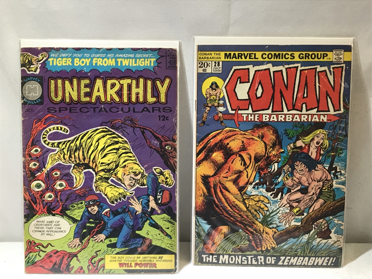 Vtg. Comic Books ~ Marvel & Harvey Thriller including Fantastic Four, Dracula, Conan, Strange Tales, Warlord, Iron Man, Sub-Mariner and Unearthly