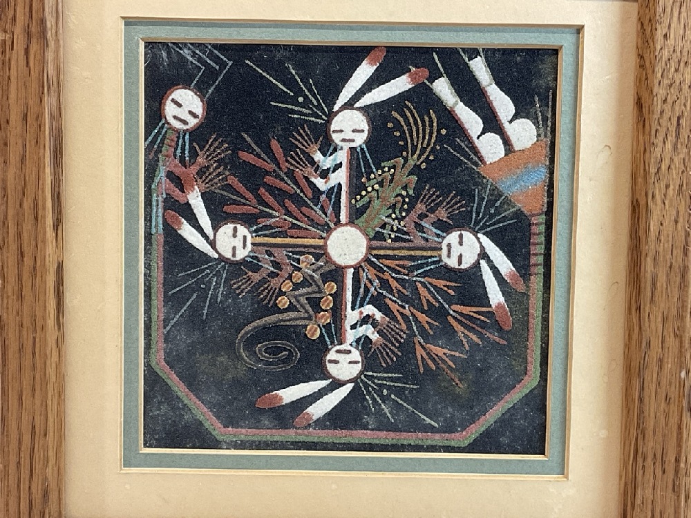 Navajo Indian Framed Sand Painting - 11” Square - Inscribed