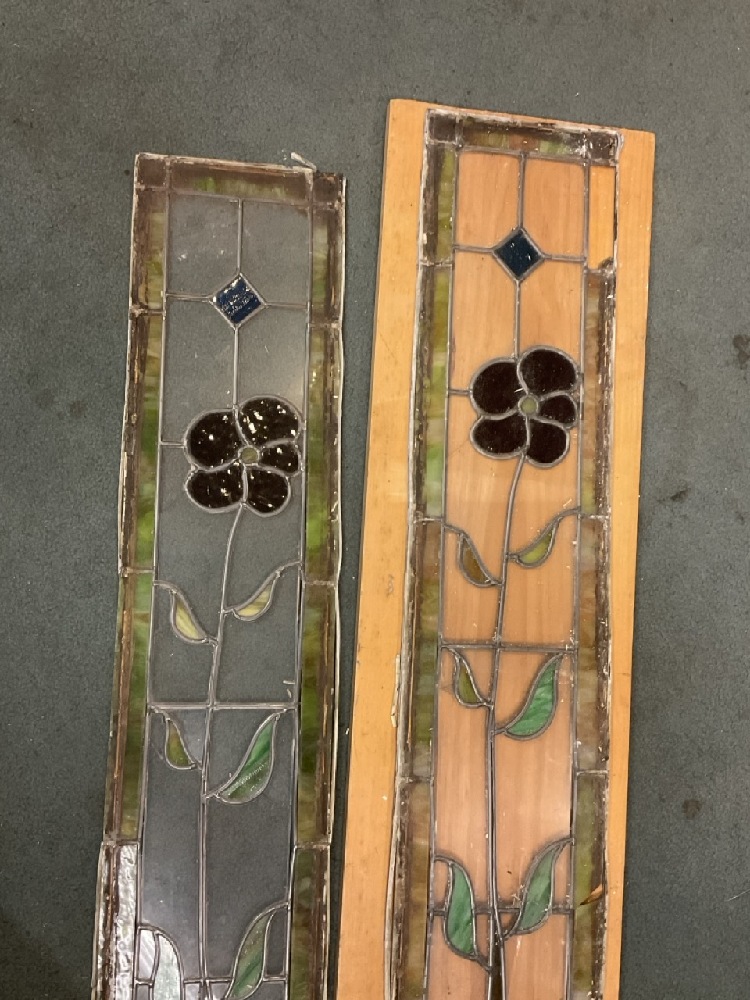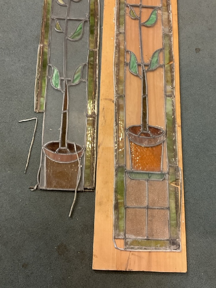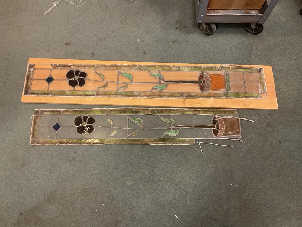 2 Stain Glass Window Panels - both Have Damage- 47” and 57” long x 8 1/2” wide