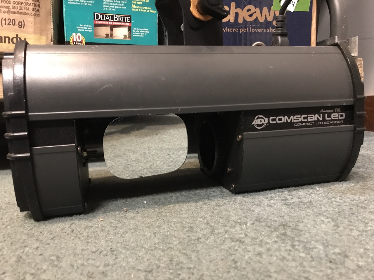 Dj/ Entertainment Lighting including Disco Ball, American DJ Comscan Led Scanner, intimidator Spot 100 IRC Rotating spot Light and Chauvet Scorpion RVM Laser Light