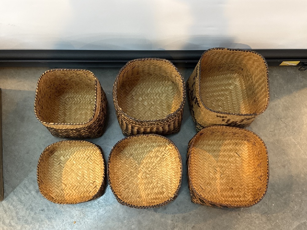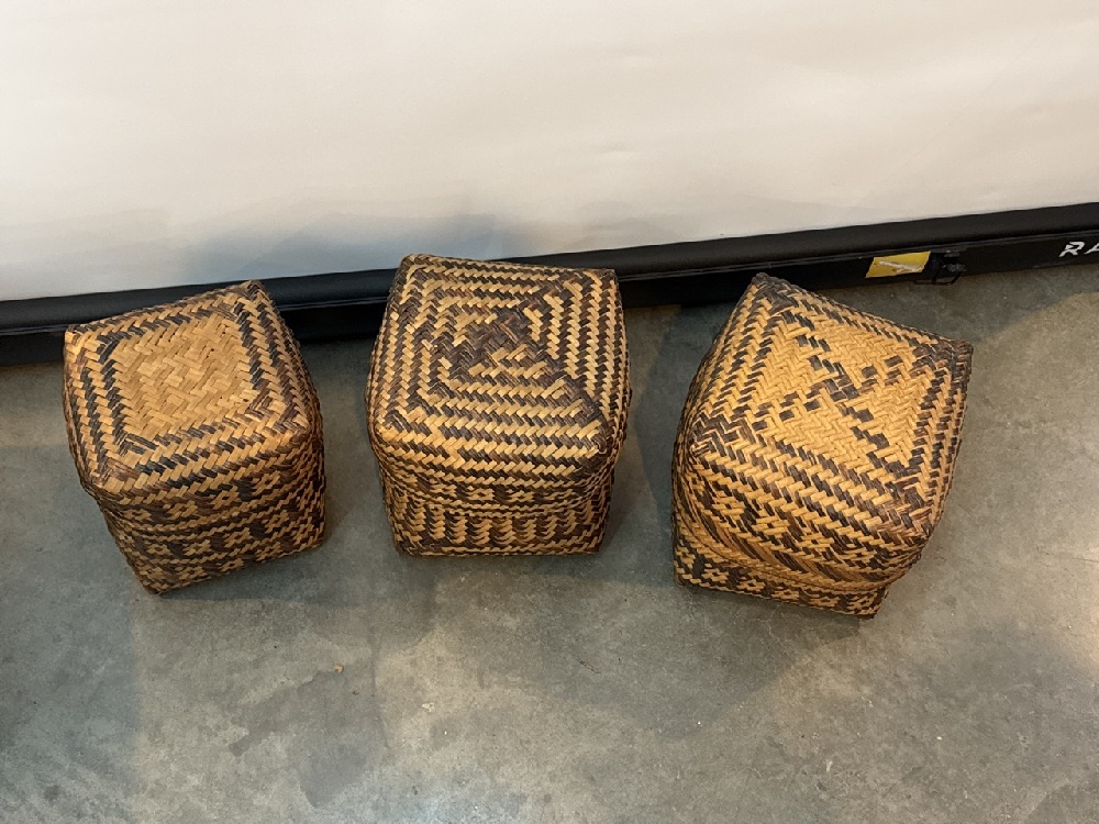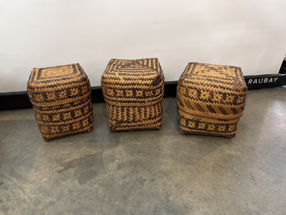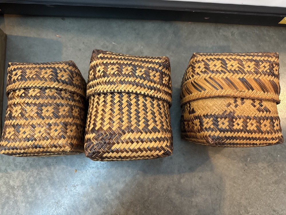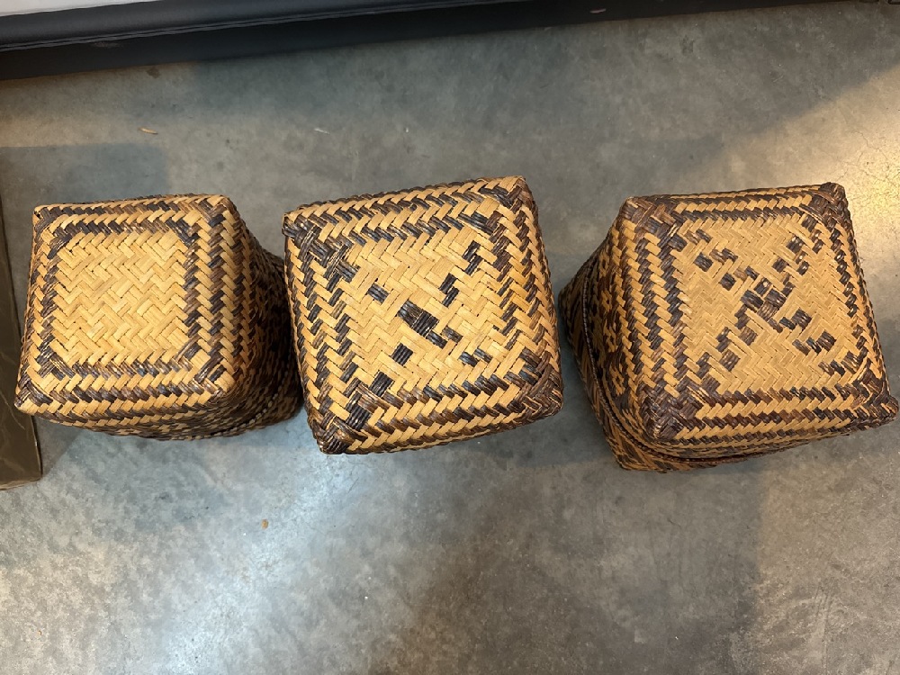 Antique Hand Woven bamboo Tribal Baskets x 3