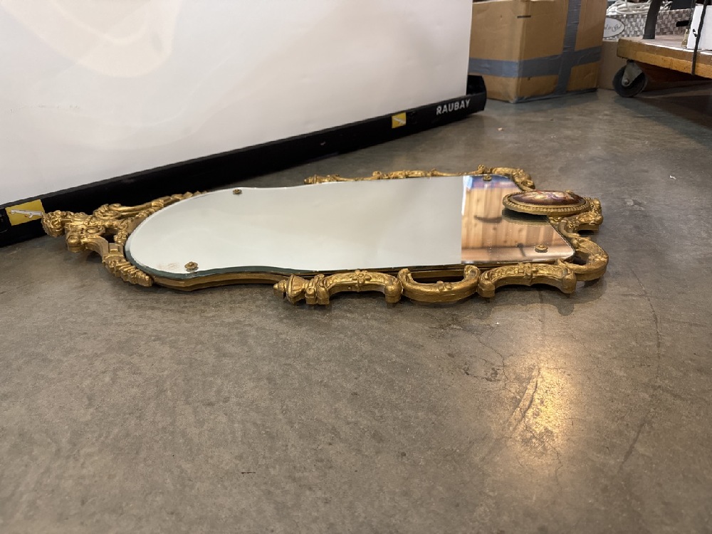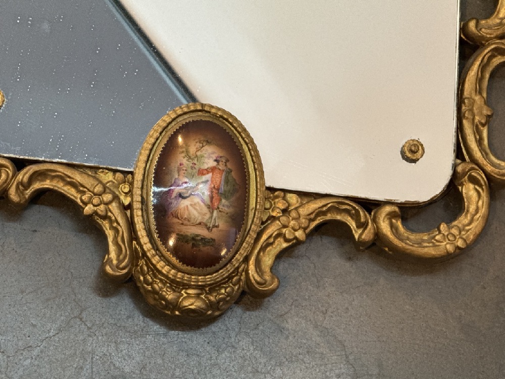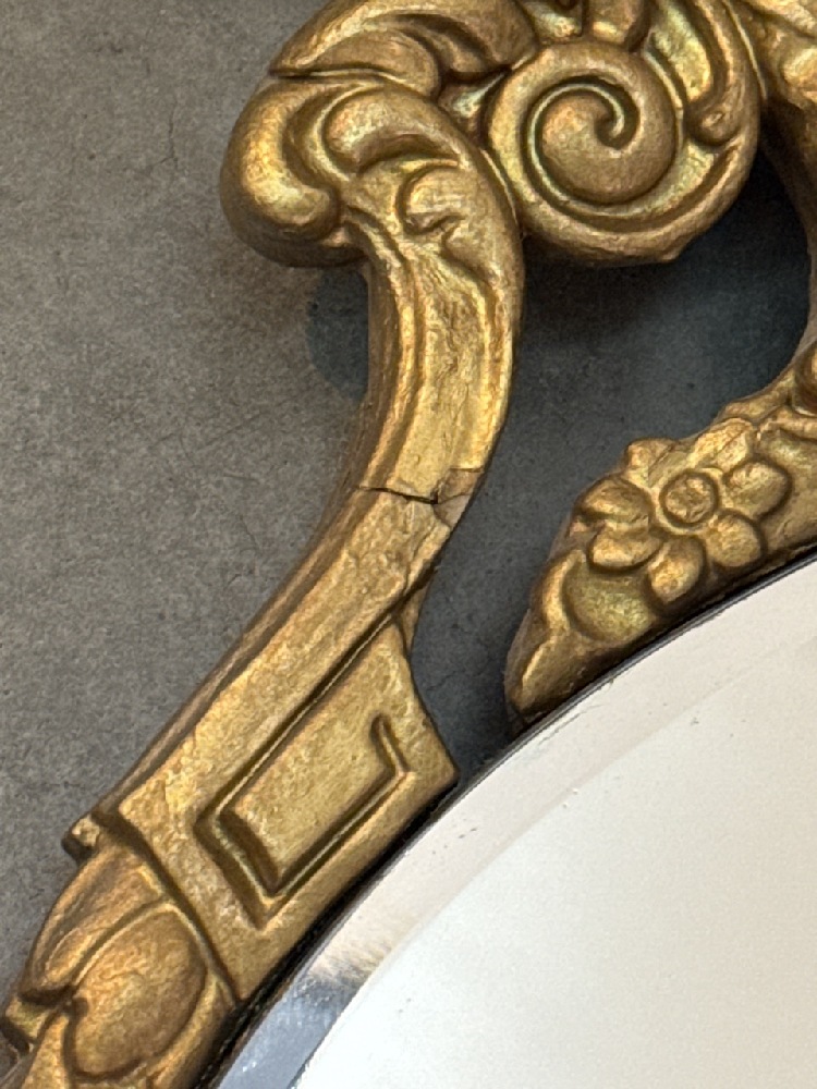 Victorian Style Gold-Gilt Framed mirror - Intricate Carvings and Scroll Work ~ 33” Tall x 18”