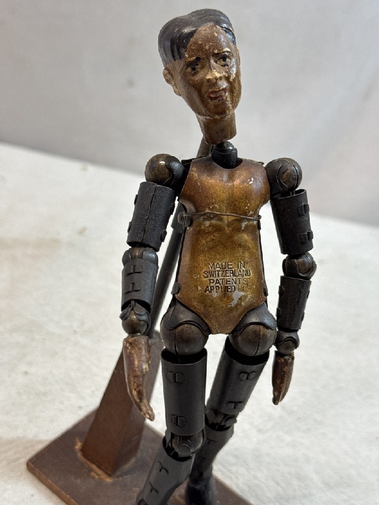 Vtg. Bucherer Saba Aluminum Doll ~ Articulated Metal Man~ Made in Switzerland