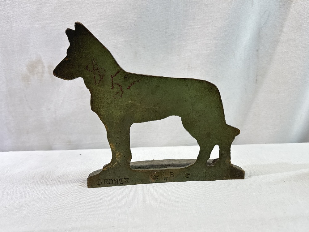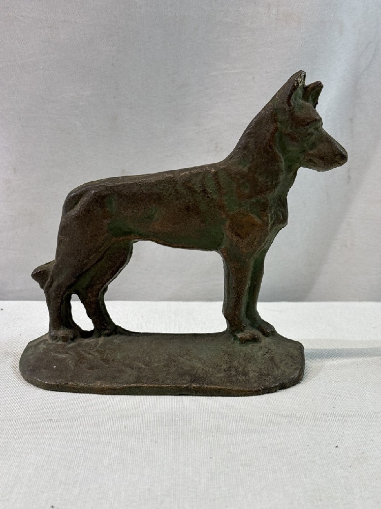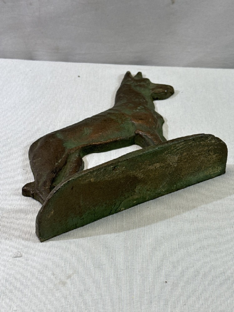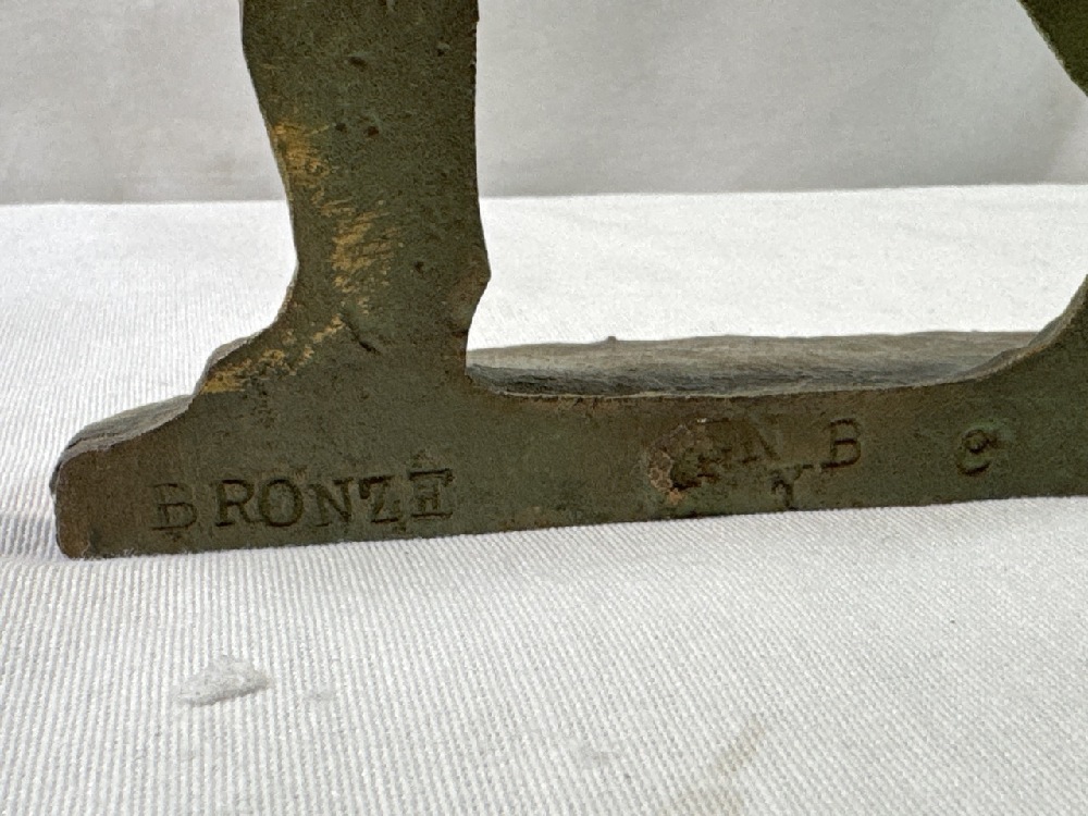 Vtg. Bronze Dog Figure Door Stop ~ Marked “N Y B” ~ 6” Tall x 6” Long