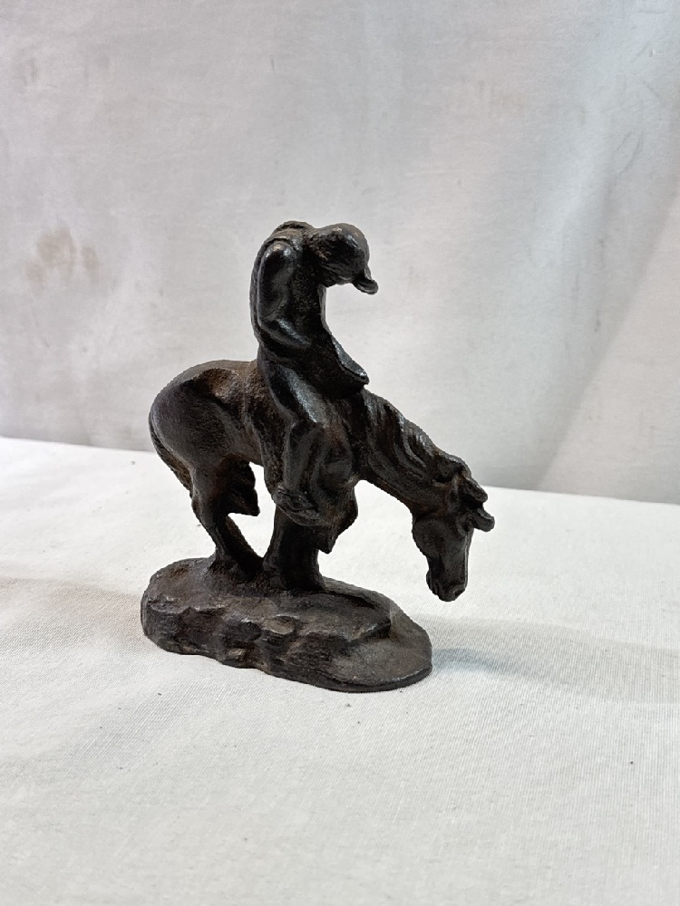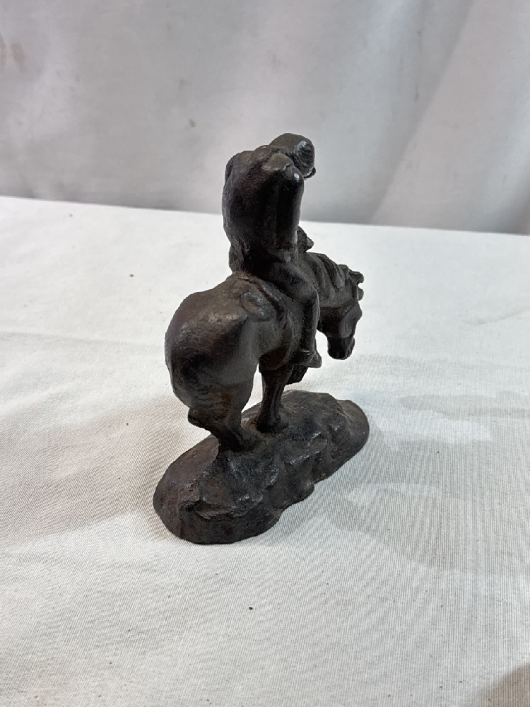 Vtg. Cast Iron “End Of Trail” Native American Horseback ~ 5 1/2” long x 6” Tall