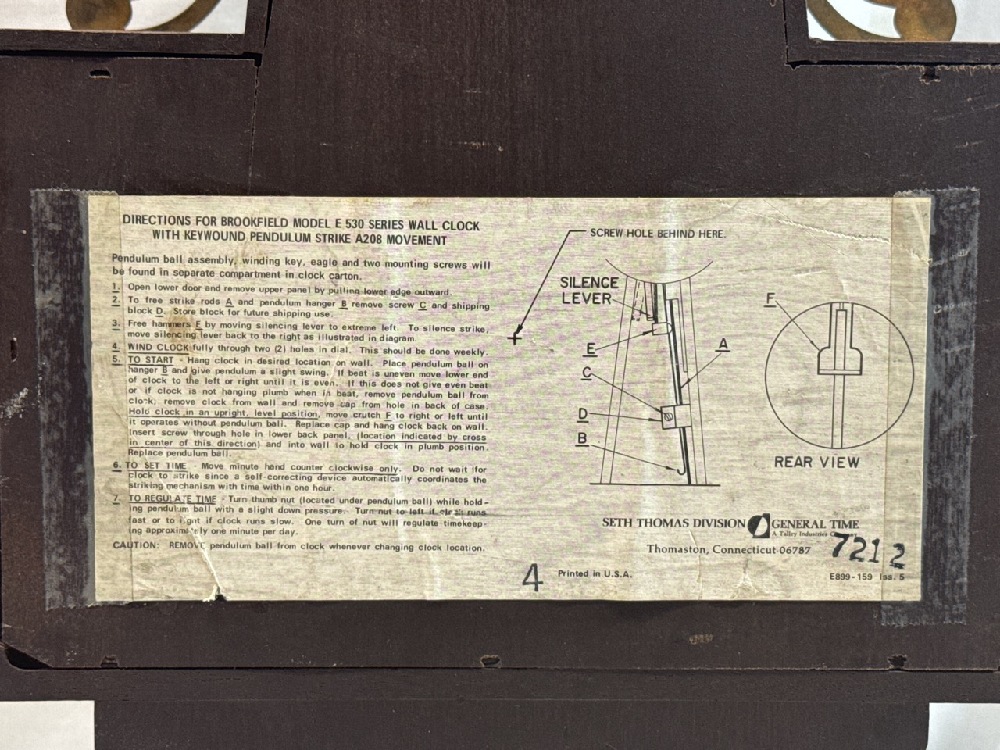 Seth Thomas Homestead Banjo Clock - 29” Tall ~ Has Key & pendulum