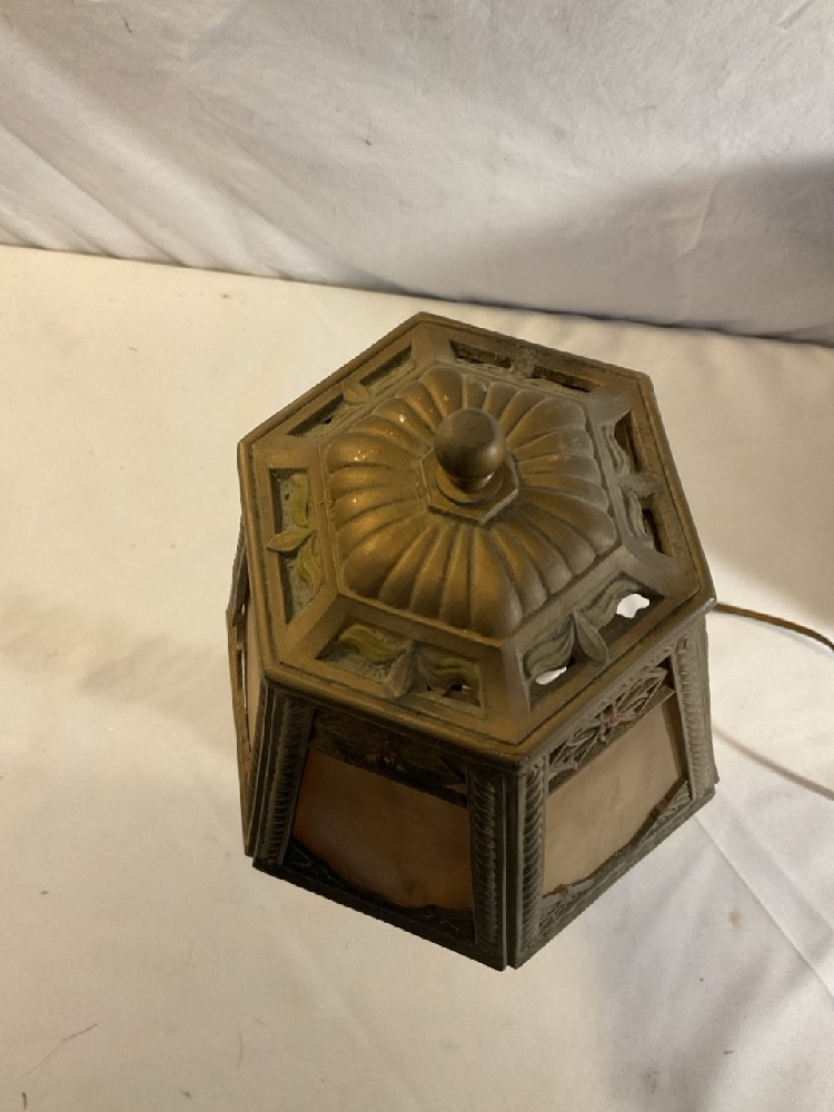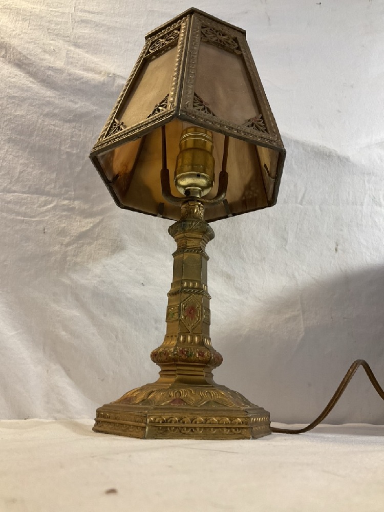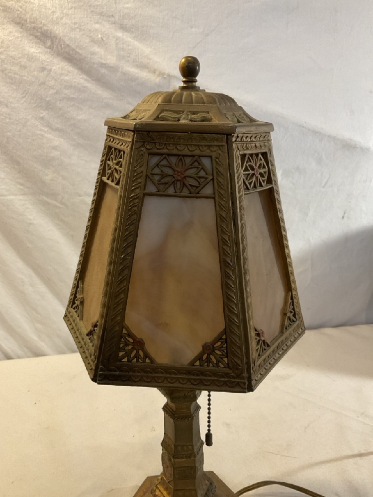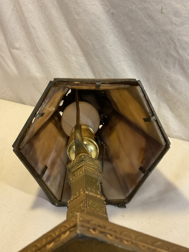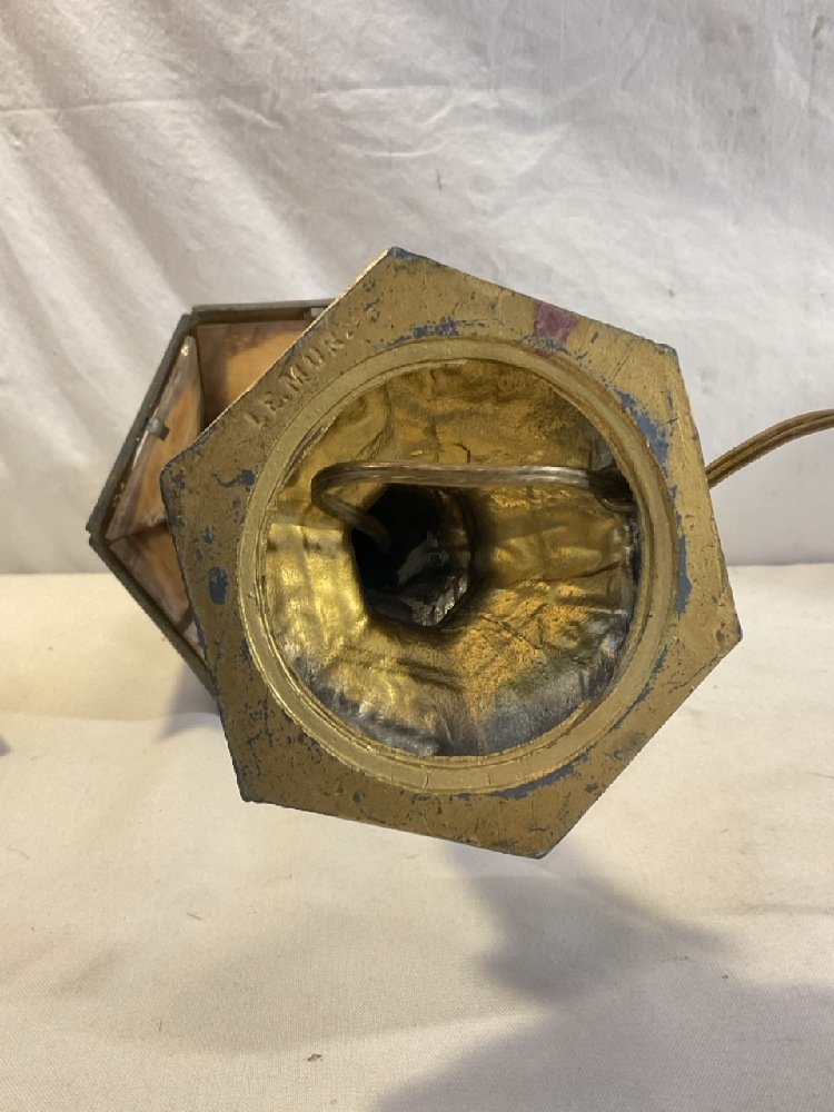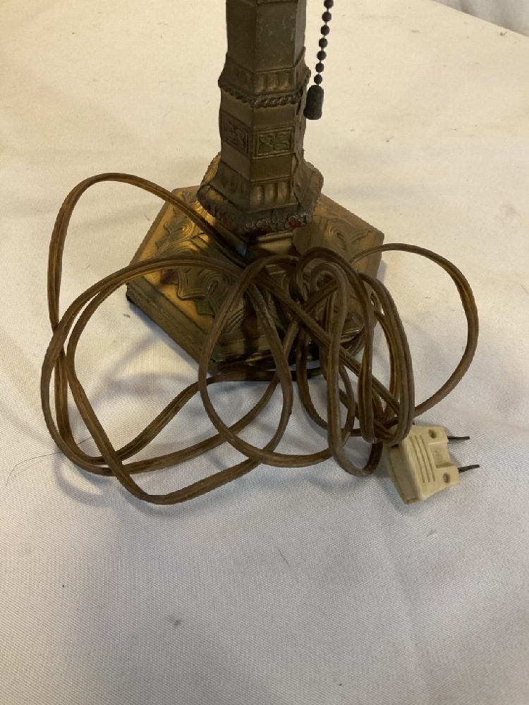 Vtg. L.E. MUR. Slag Glass and Brass Lamp - 16 1/2” Tall