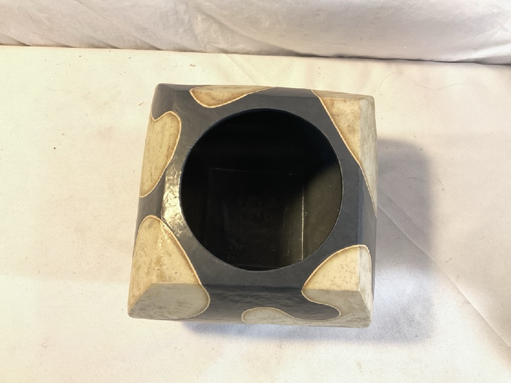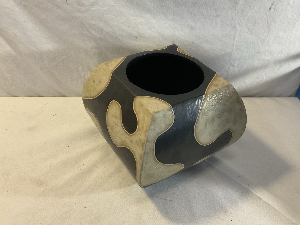 Vtg. Signed Abstract Pottery Vase - Black & White ~ 7” Tall x 7 3/4” square