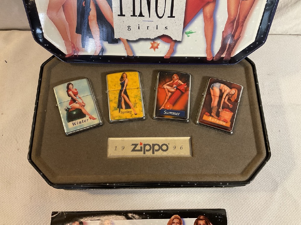 1996 Zippo Pinup Girls Lighters in Tin “Four Seasons”