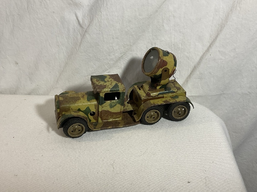 Vtg. Tin Toy Cars including Distler Tin Wind-Up, Dinky Toys, German Tinplate Military Searchlight Truck