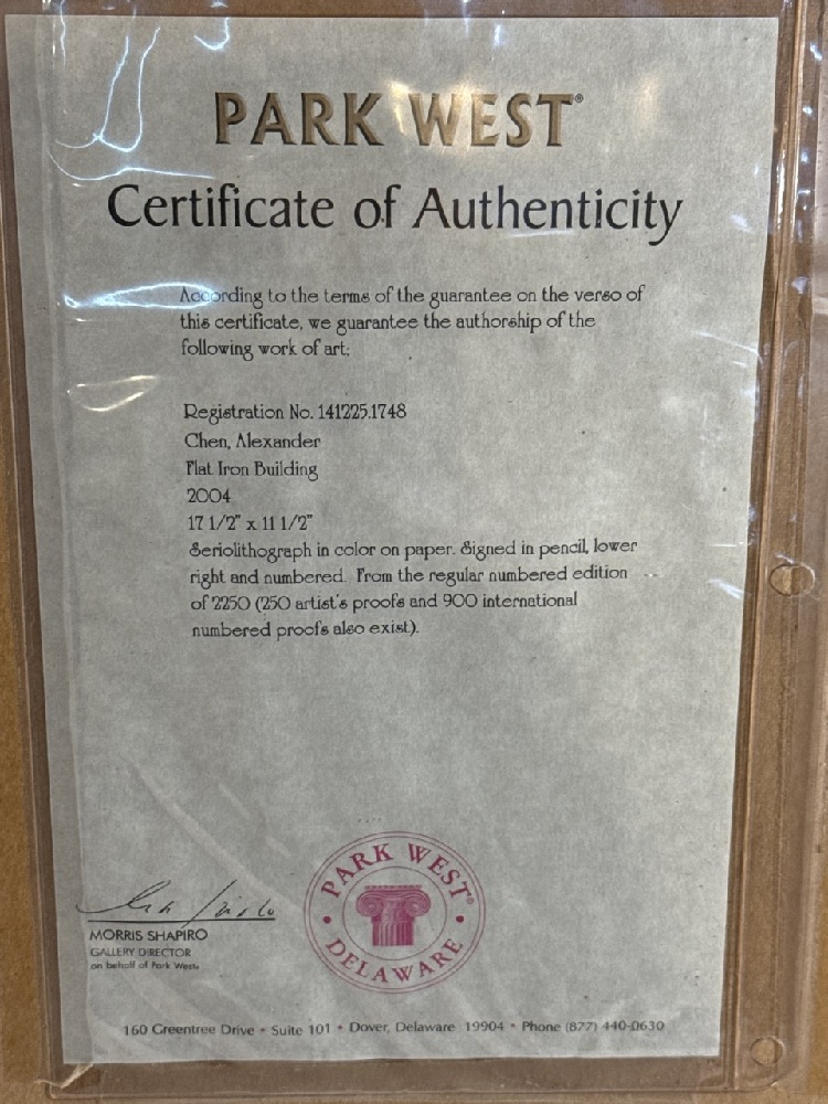 Seriolithograph in Color on Paper “Flat Iron Building” - Pencil Signed Chen Alexander and Numbered 612/2250 ~ 2004 17 1/2” x 11 1/2” - Has Certificate of authenticity