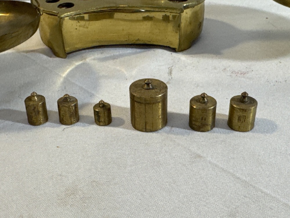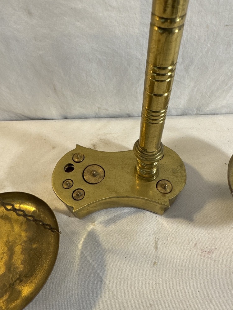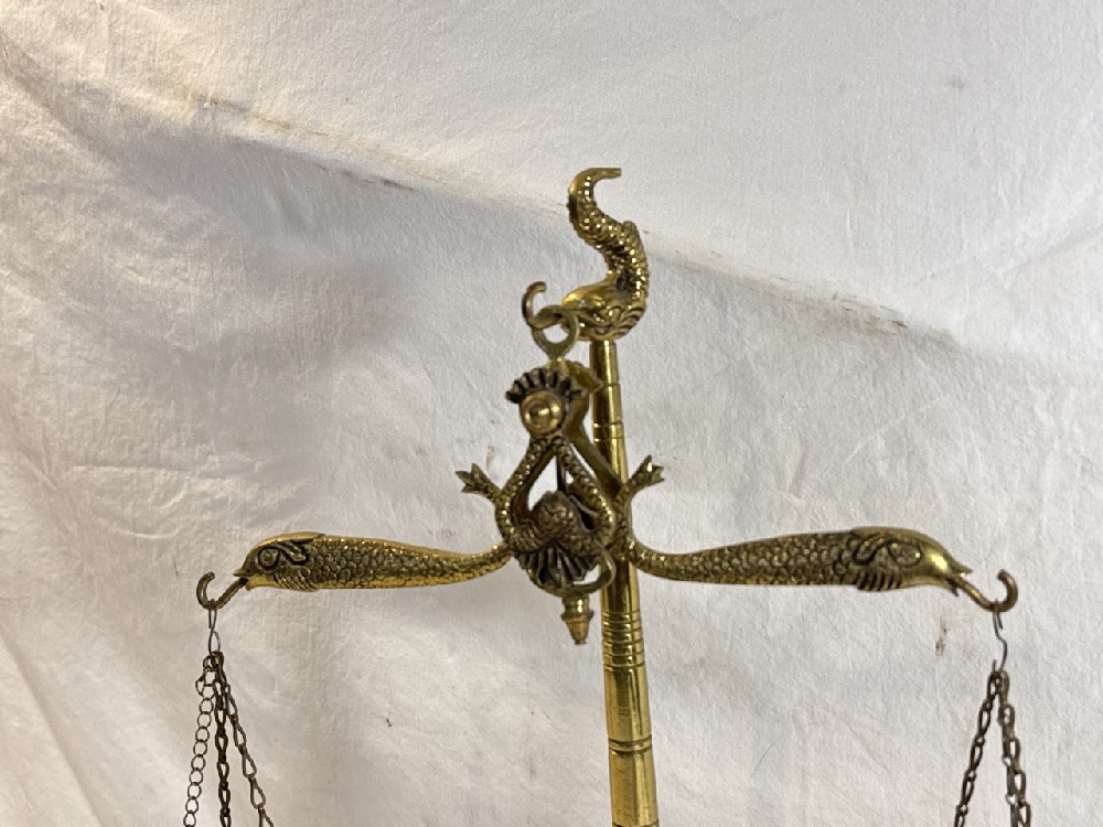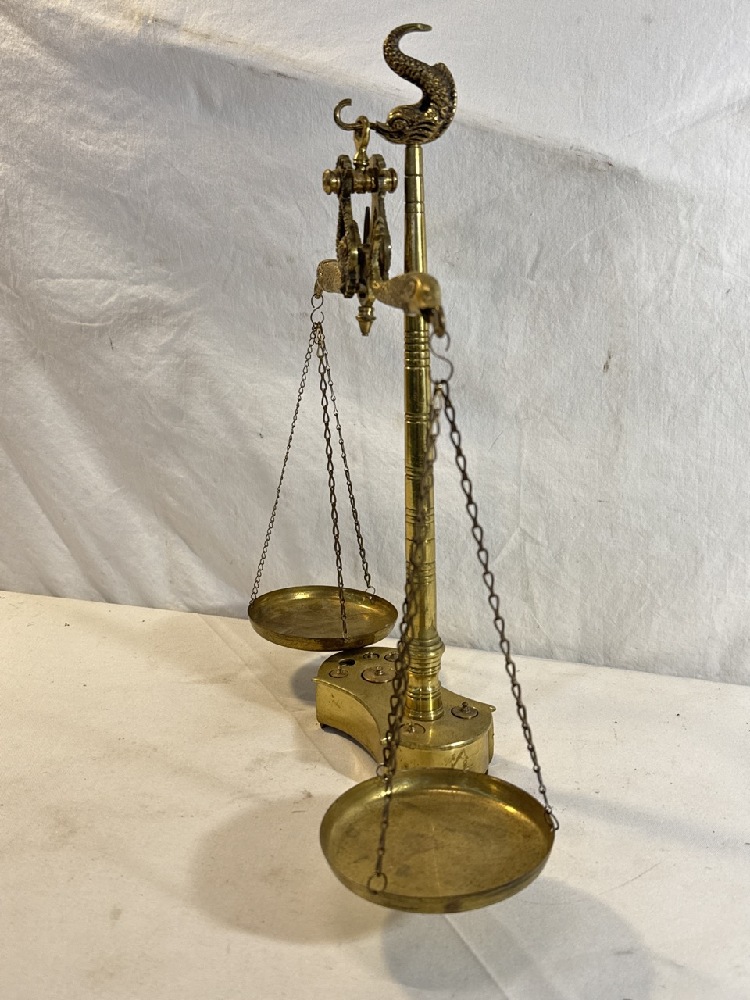 Antique Brass Balance Scale Featuring Dolphins- Missing one Weight - Made In Portugal