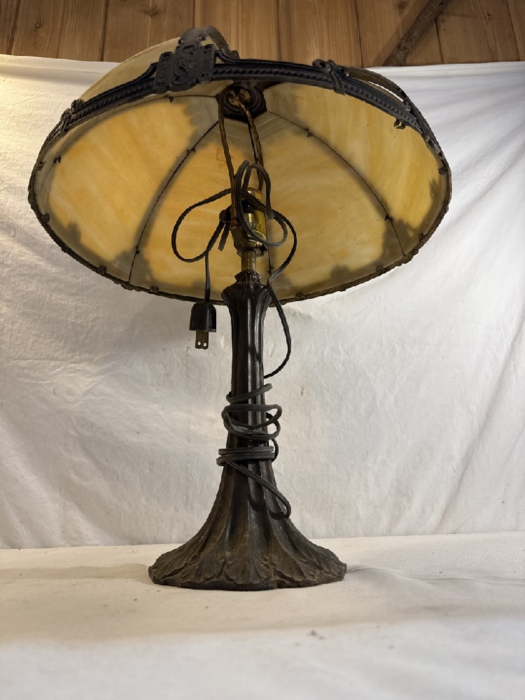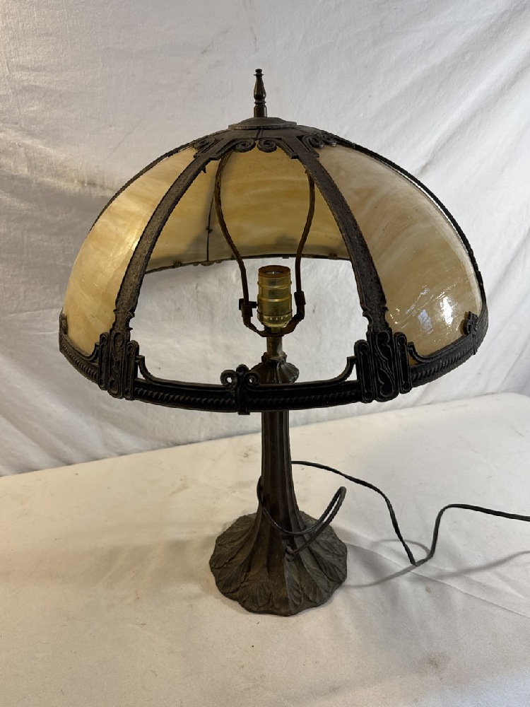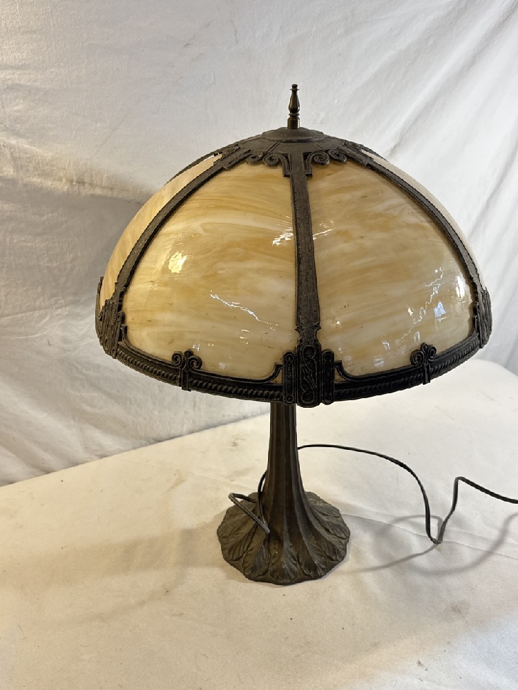 Antique Slag Glass Panel Lamp - Missing one Panel~ 22” Tall / 16” Around base of shade