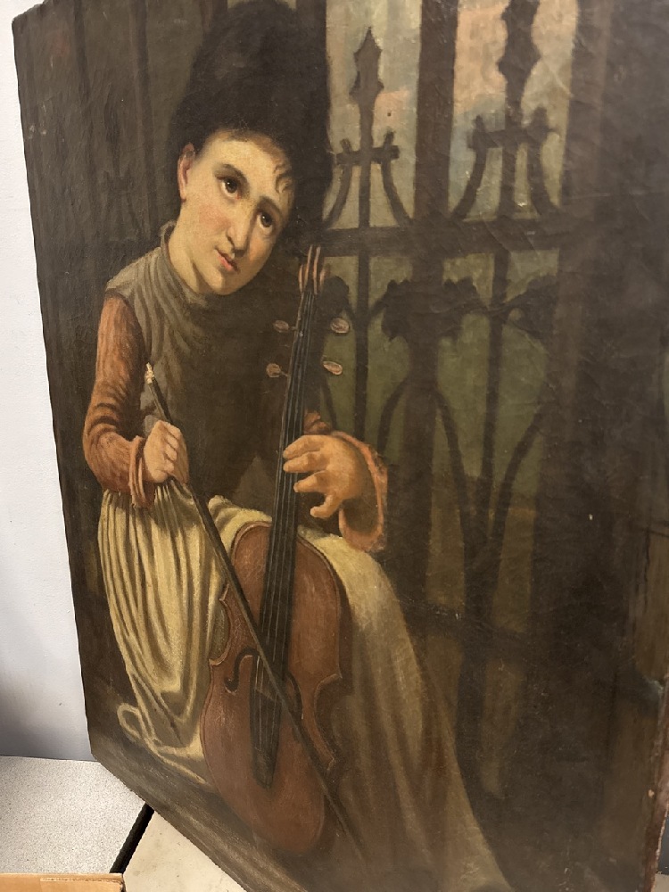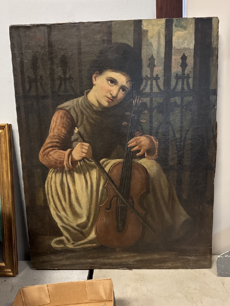 Vtg. Oil Painting on Canvas ~ Girl Playing Cello - 28” x 34” Tall