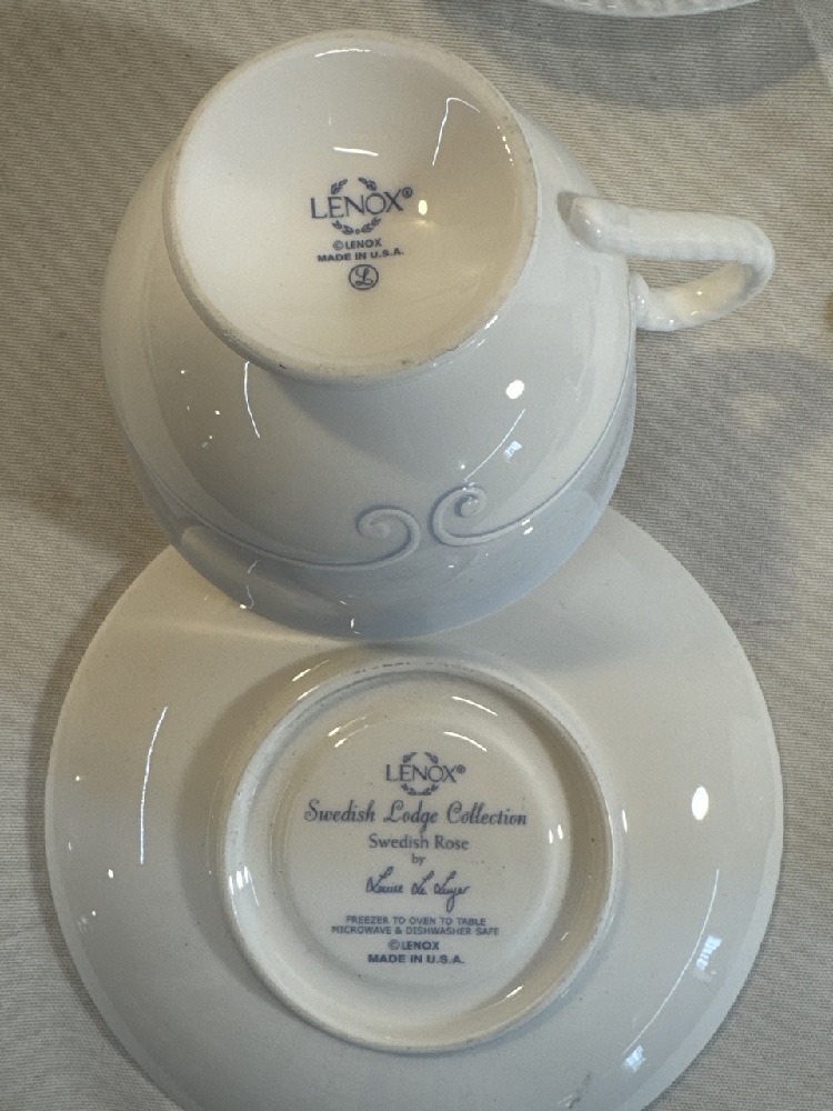 Lenox Swedish Lodge Collection Dinner Ware Set ~ 8) 11” Plates, 8) 9” Plates, 8 Saucers and 7 Teacups
