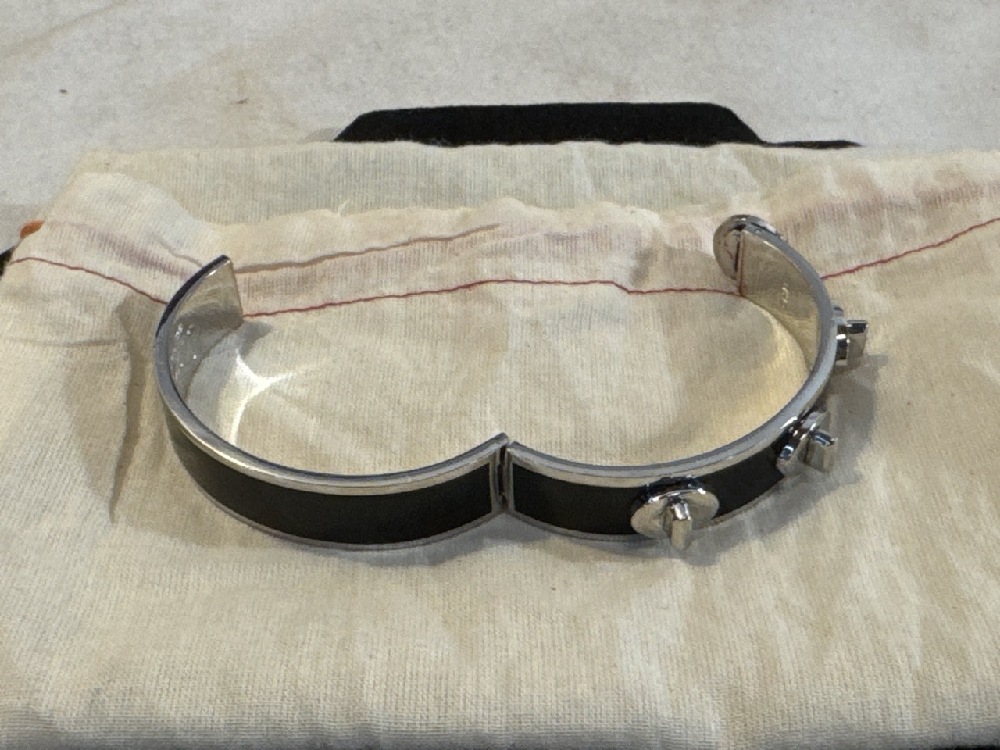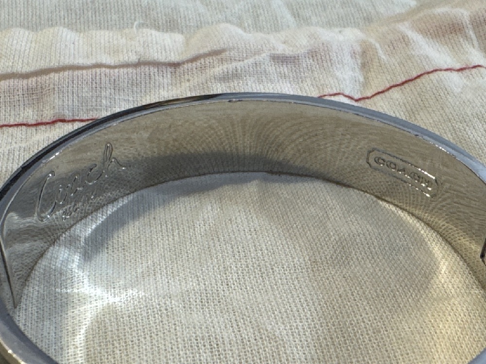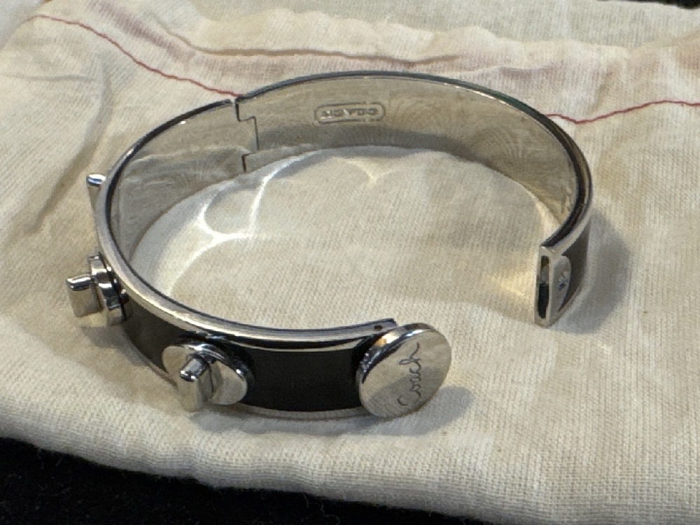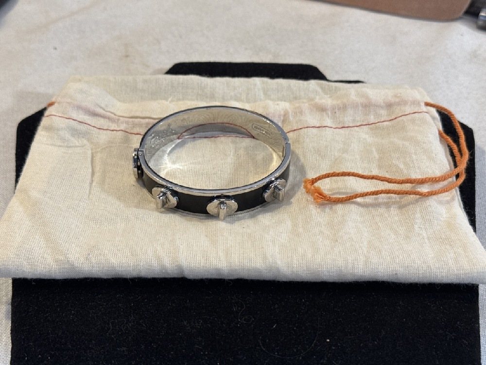 Coach Black Enamel And Silver Tone Studded Hinged Bangle Bracelet