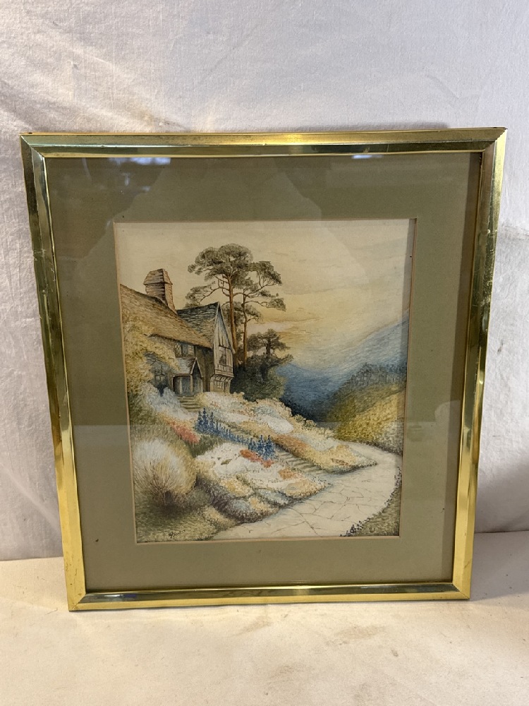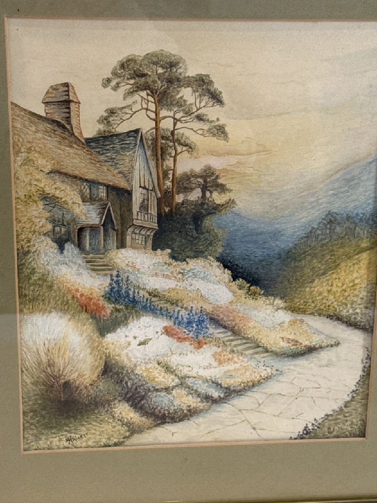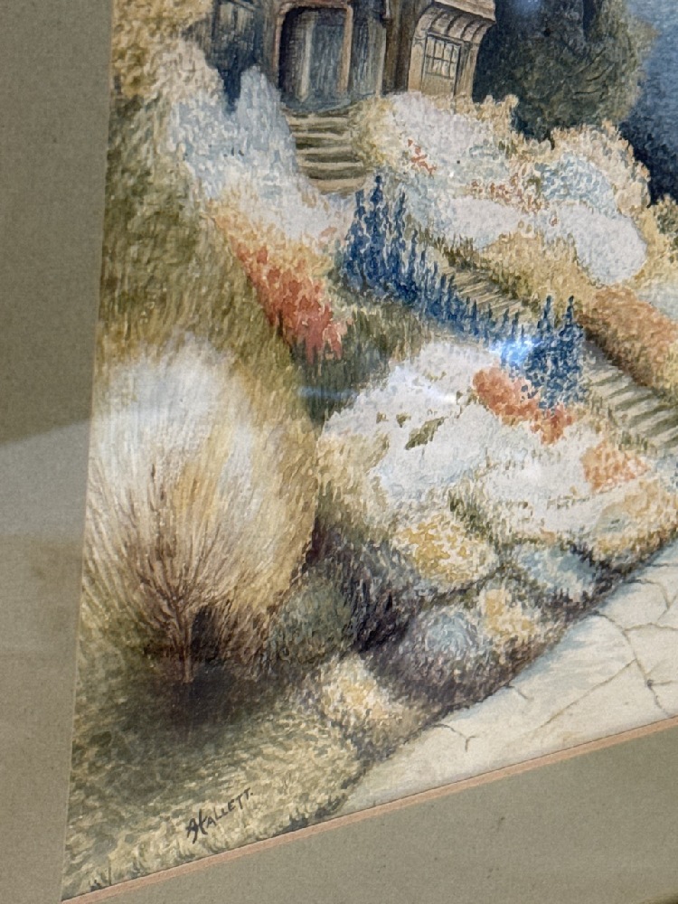 Framed Water Color Cottage Signed Hallett - 14 1/2” x 16 1/2”