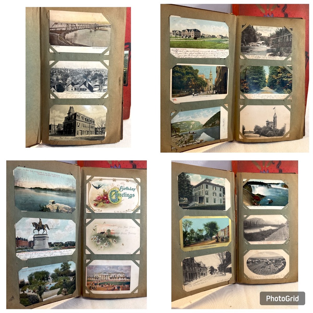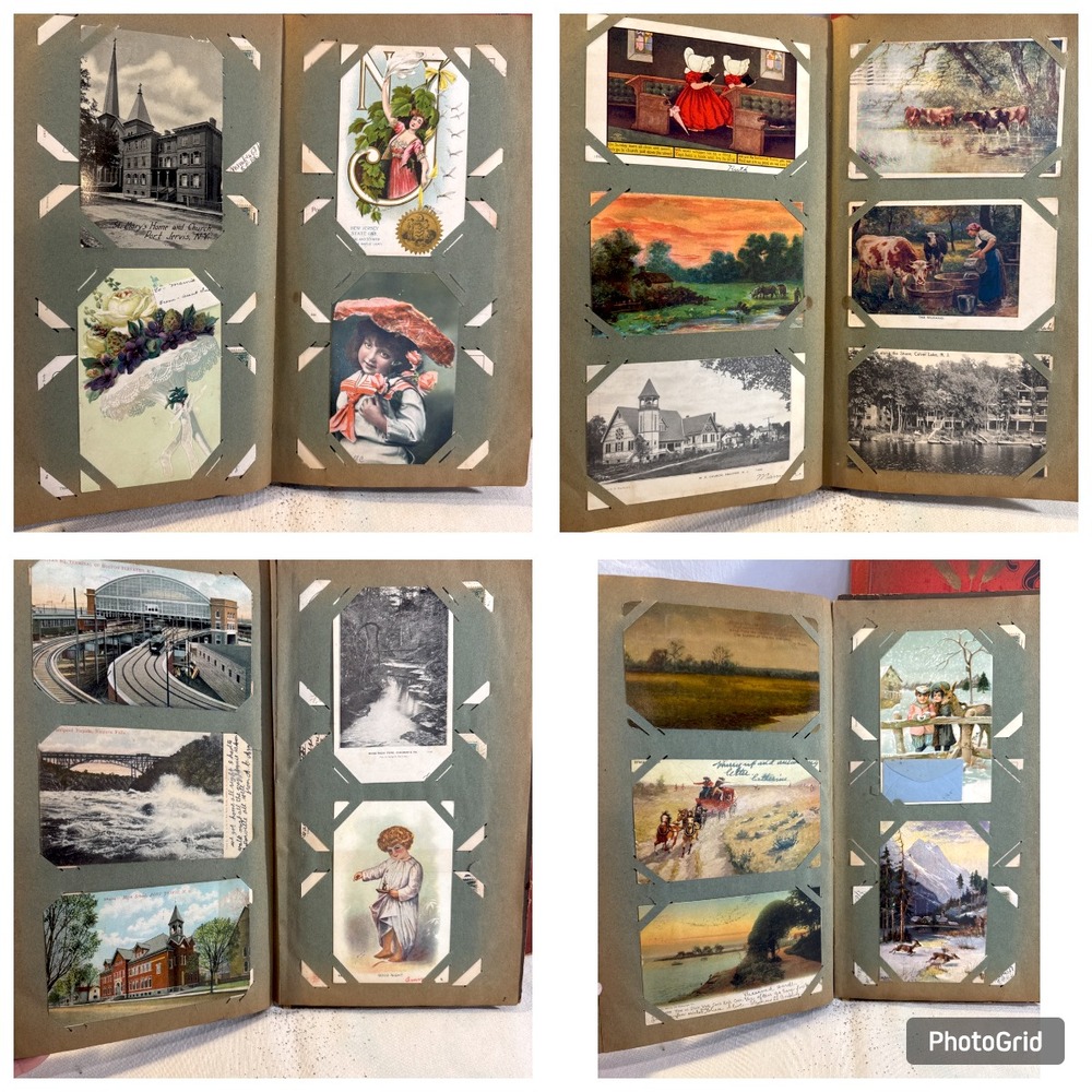 Vtg. Post Cards in Albums dating 1907 including Dingmans P.A., Port Jervis, Boston Mass., Niagara Falls, Albany NY, Ohio, NJ and More