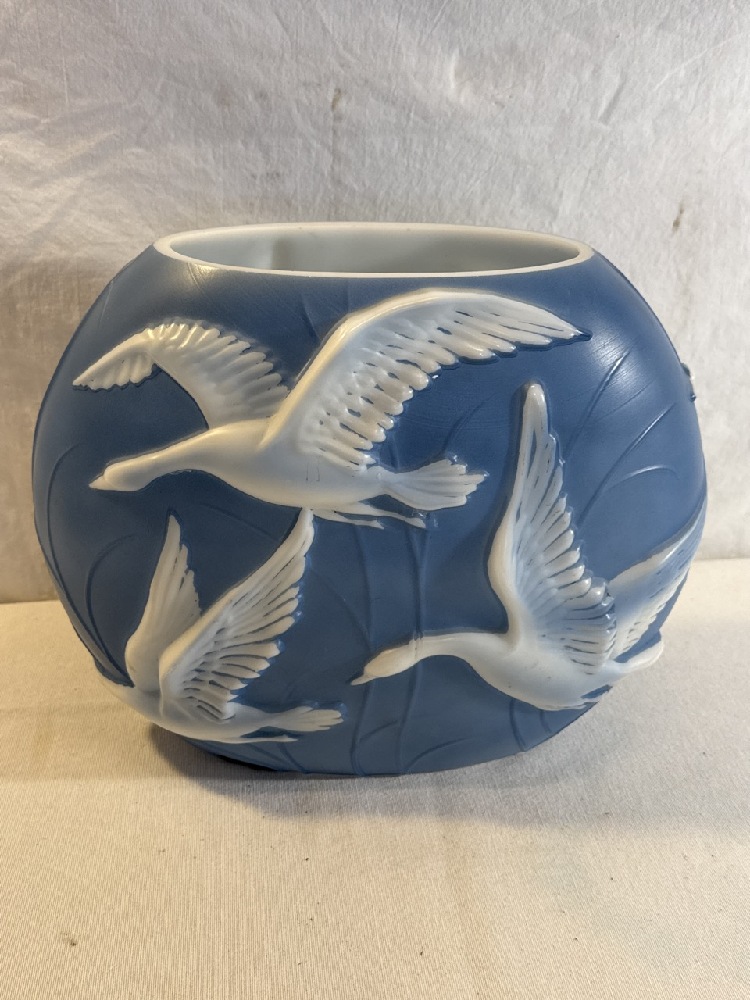 Phoenix Consolidated Art Glass Pillow Vase “Flying Geese” ~ 9 1/2” Tall x 12” Wide