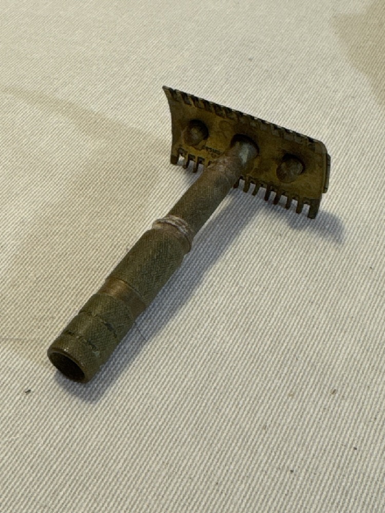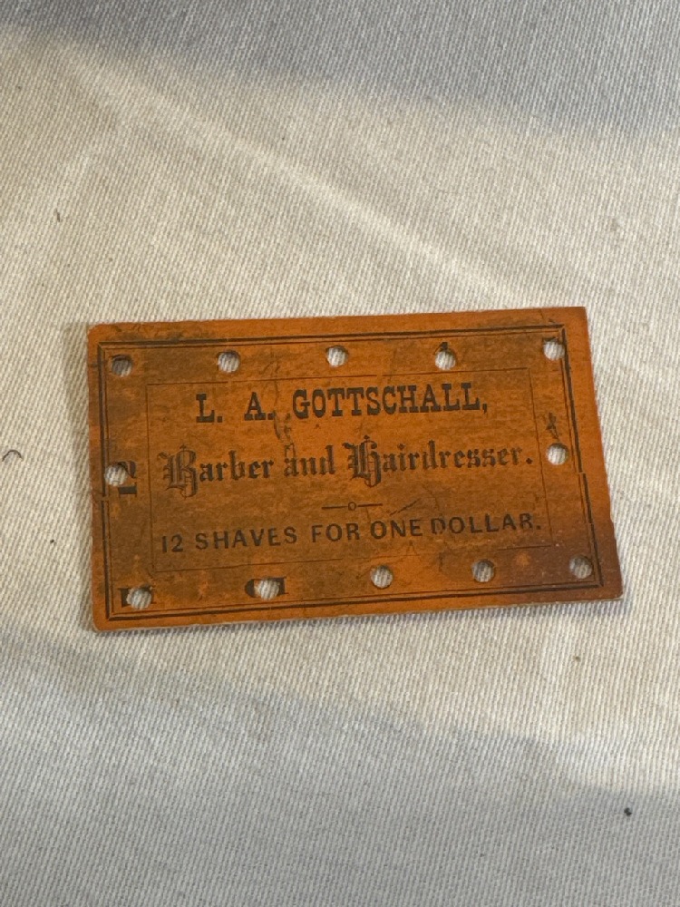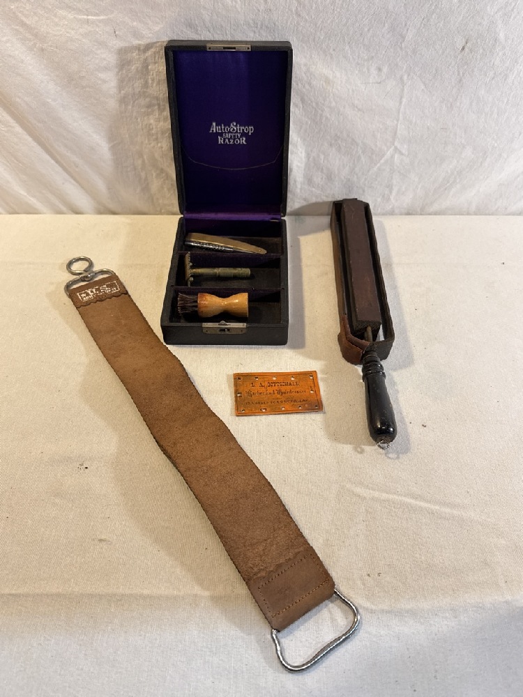 Vtg. Barber Shop Tools ~ Razor Kit, Leather Sharpening Belts , Punch Card