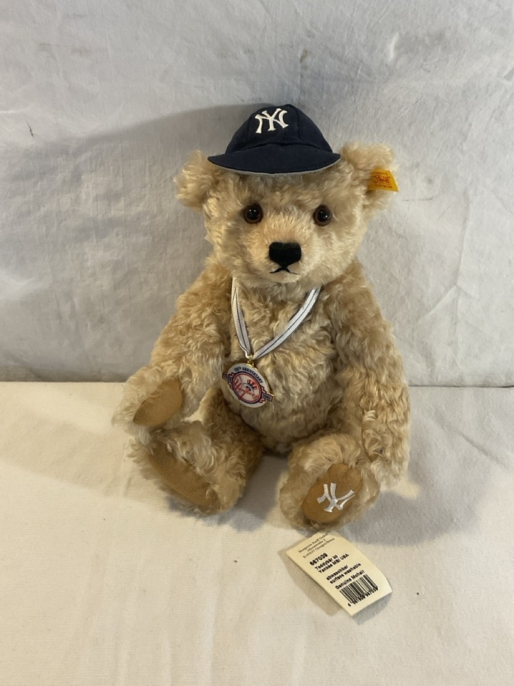 New York Yankees Steiff Genuine Mohair Teddy Bear With Tags