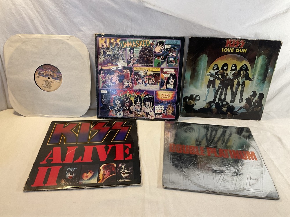 Vtg. Kiss Record Albums - Alive II, Casablanca, Double Platinum, Love Gun and Unmasked