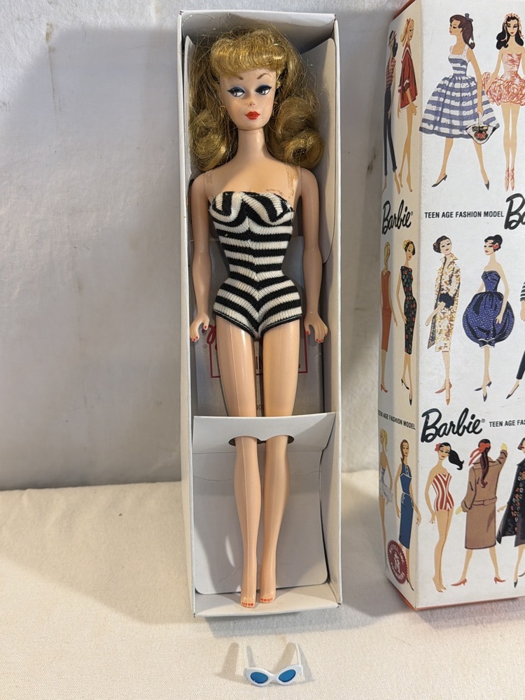 Vintage 35th Anniversary Barbie Doll in Striped Swimsuit with Original Box- Stock No 850