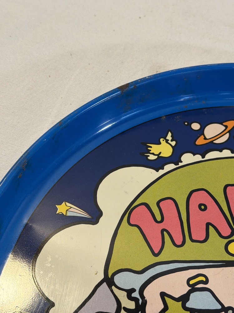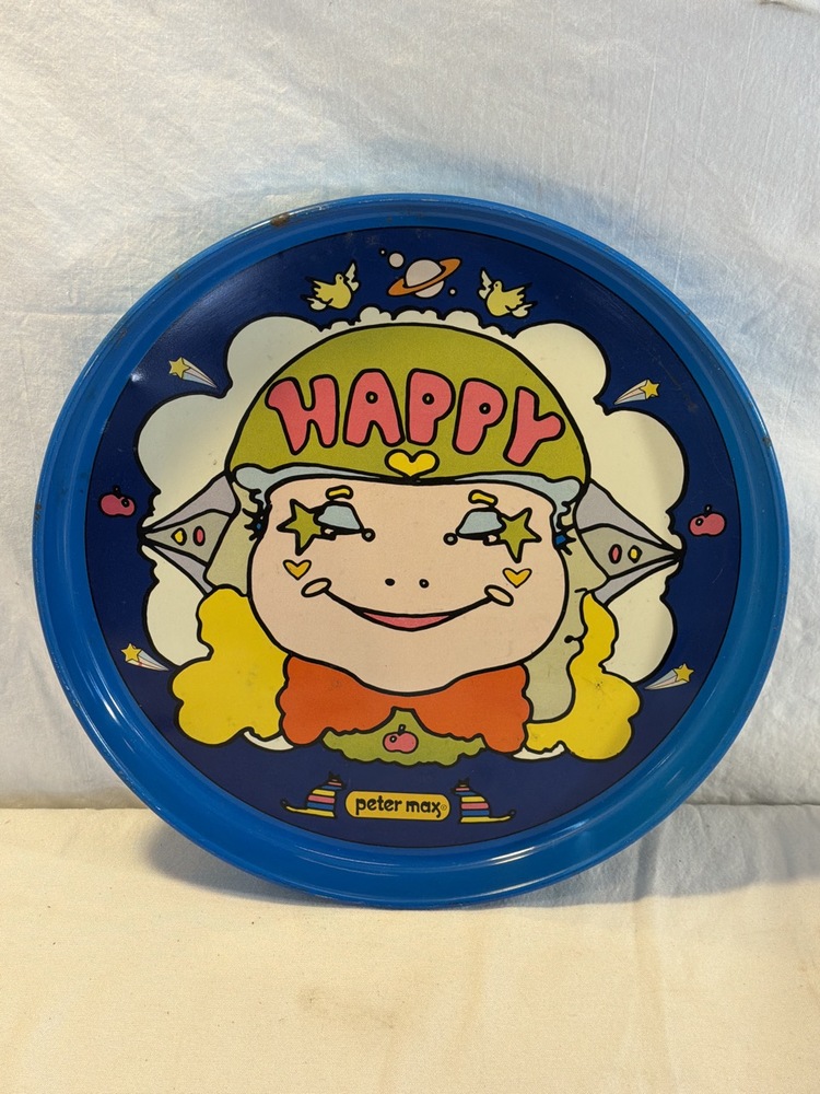 Vtg. 1960’s Peter Max “Happy” Metal Tray ~ 13” Round