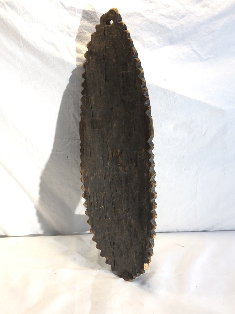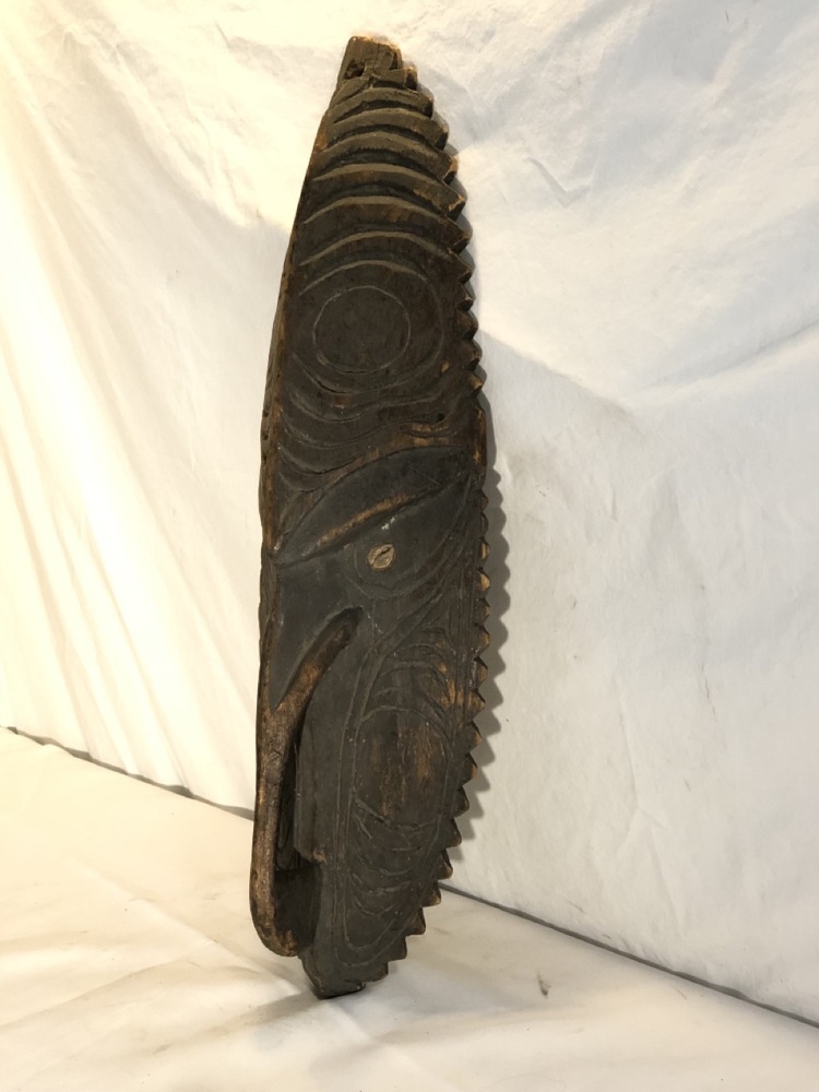 Hand Carved Wood Effigy Mask W/ Shell Eyes - 21” tall x 7” wide