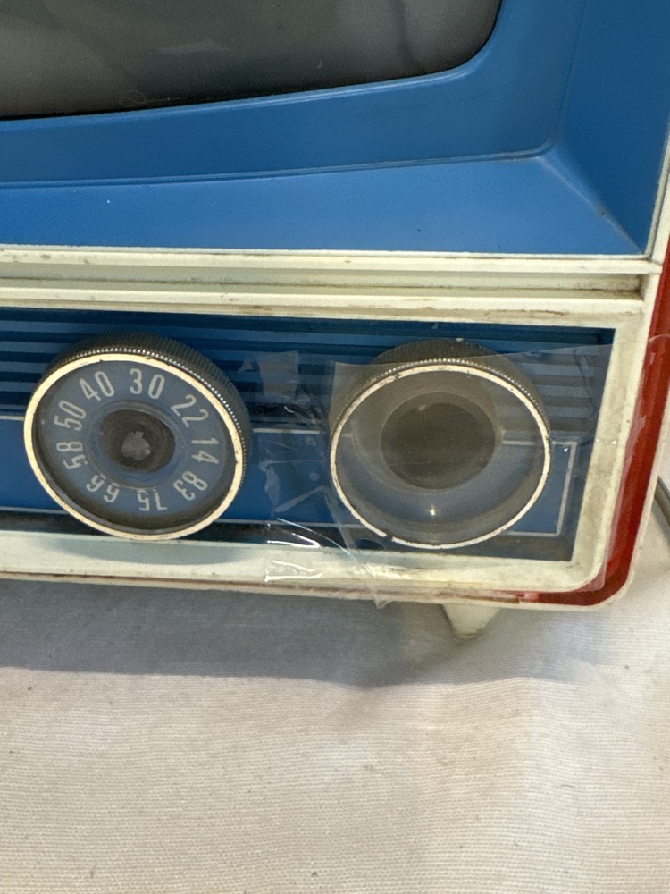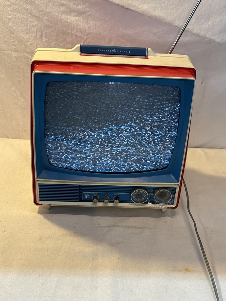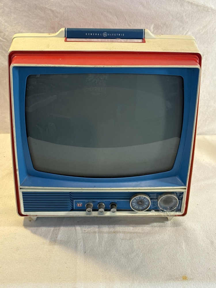 1976 General Electric Bicentennial Portable TV - Turns on, One knob needs repair. ( screen works - picture shows a reflection)