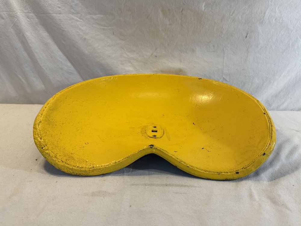 Vtg. Metal Tractor Seat -Painted Yellow ~ 18 1/2” long x 15 1/4” Wide