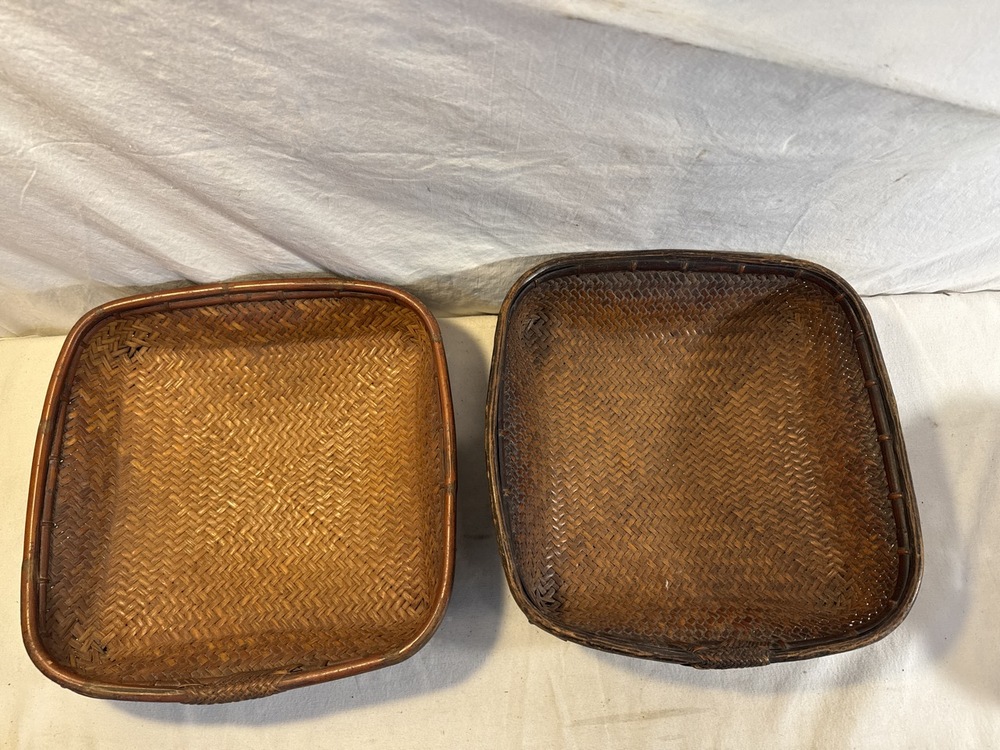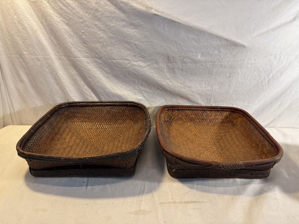 2 Antique Hand Woven Winnowing Baskets