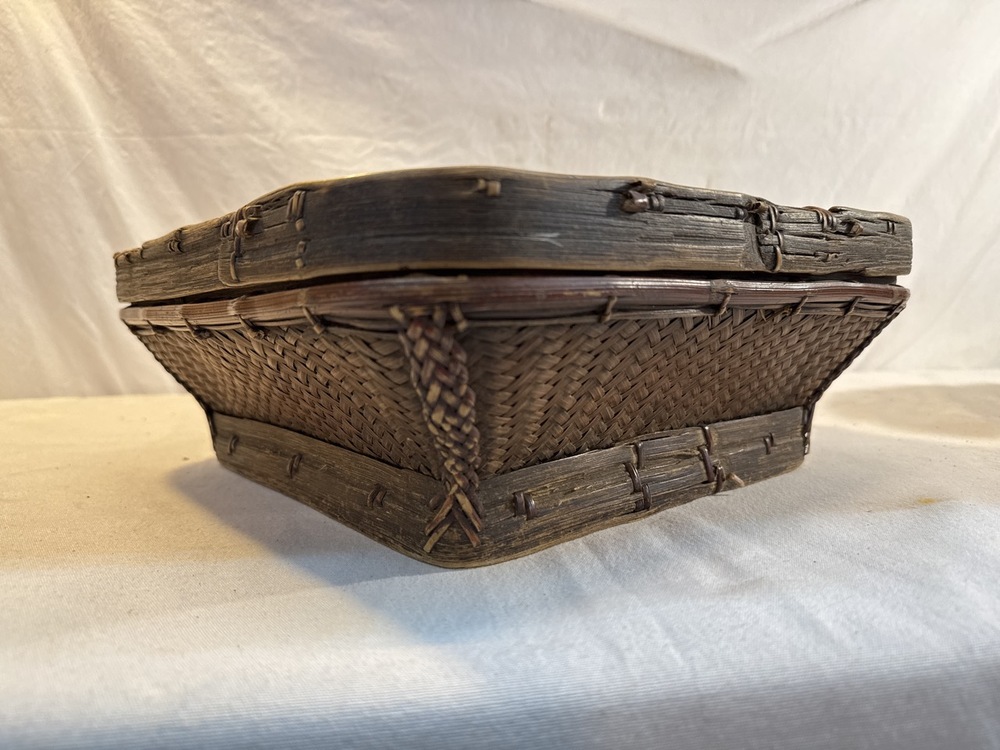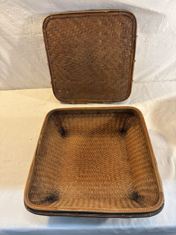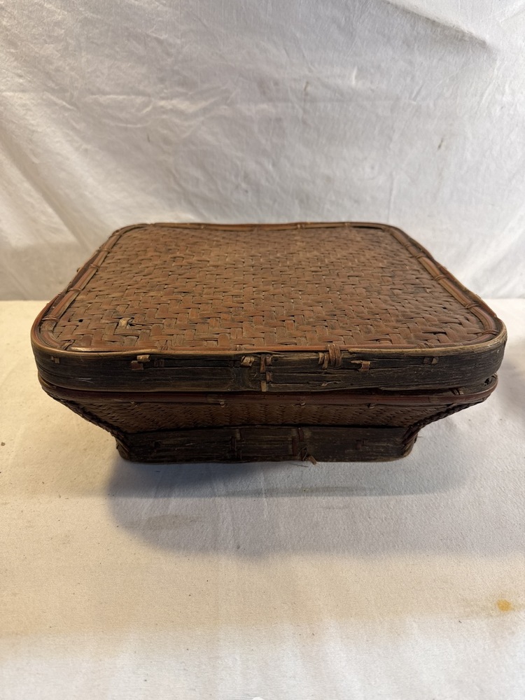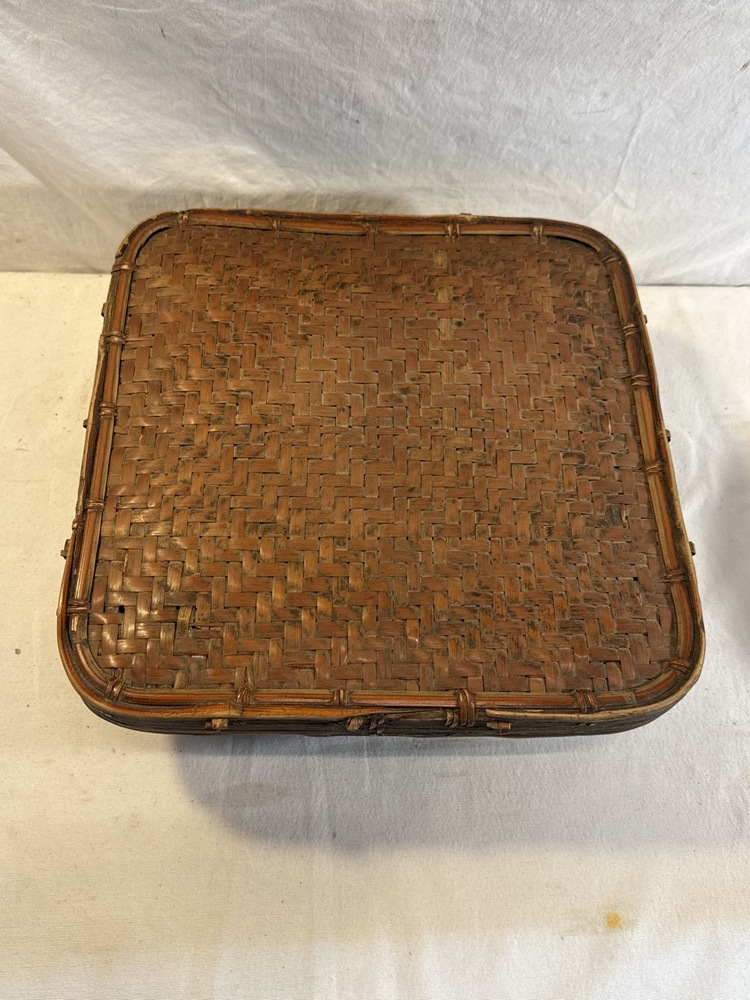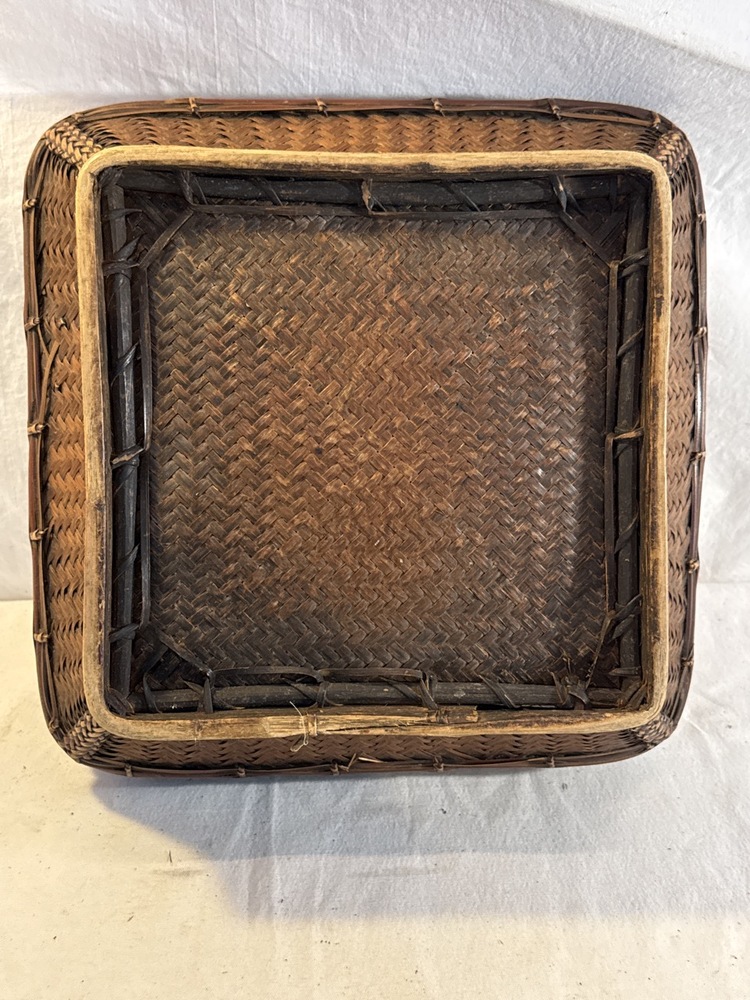 Hand Woven Rice Basket likely Made by Ifugao People In the Philippines- 13 1/4” Square by 5 1/4” Tall