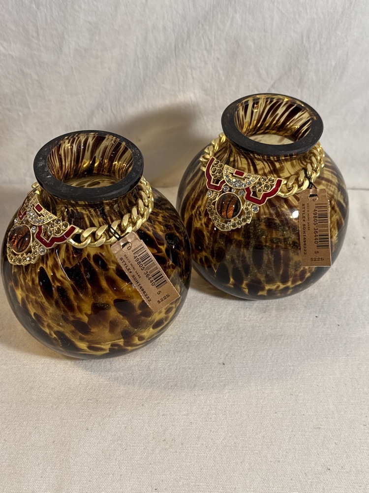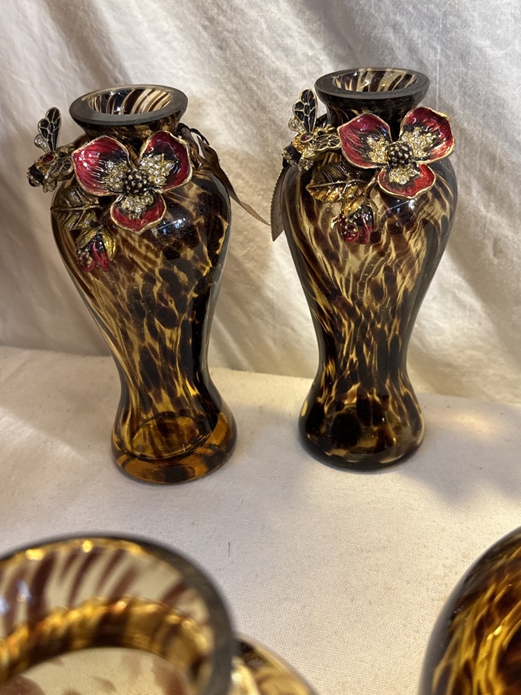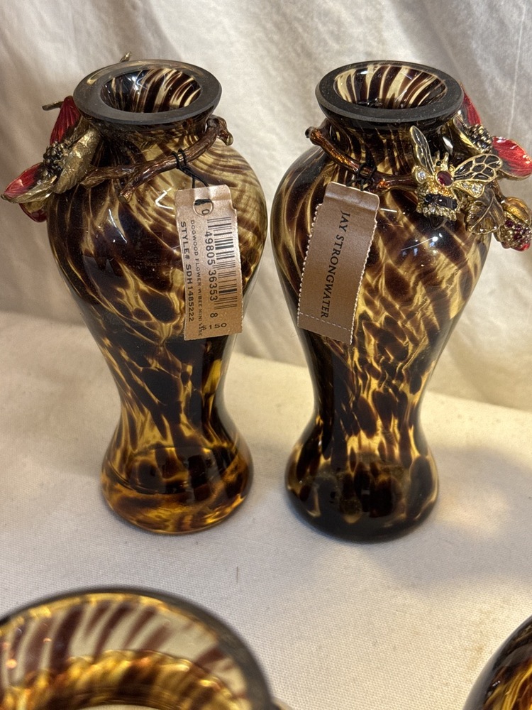 Jay Strongwater Hand Blown Glass Vases and Bottles Featuring Ornate, Jeweled Metalwork - 25 Bottles ; 9 Boxes ; 36 Jeweled Metalwork
