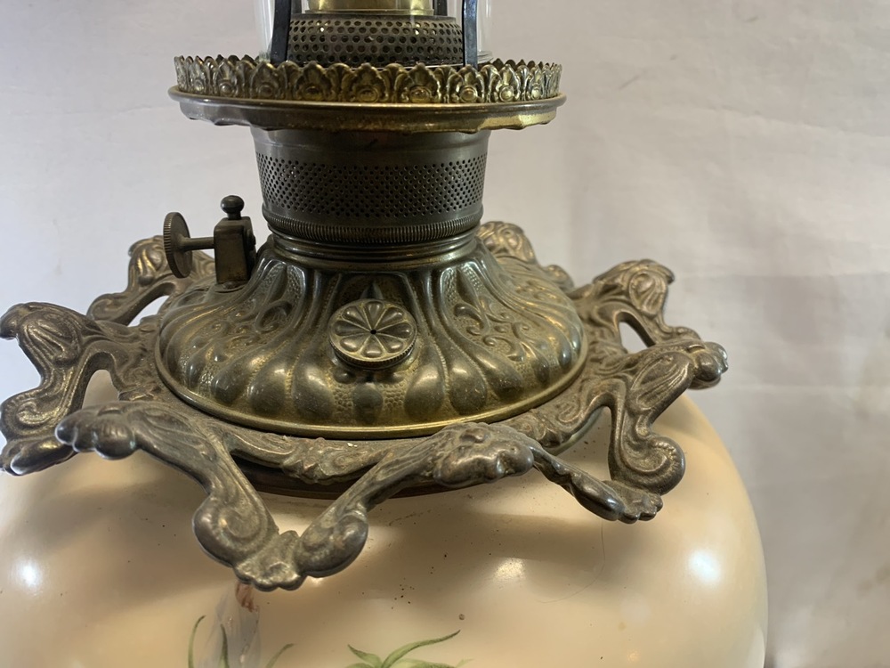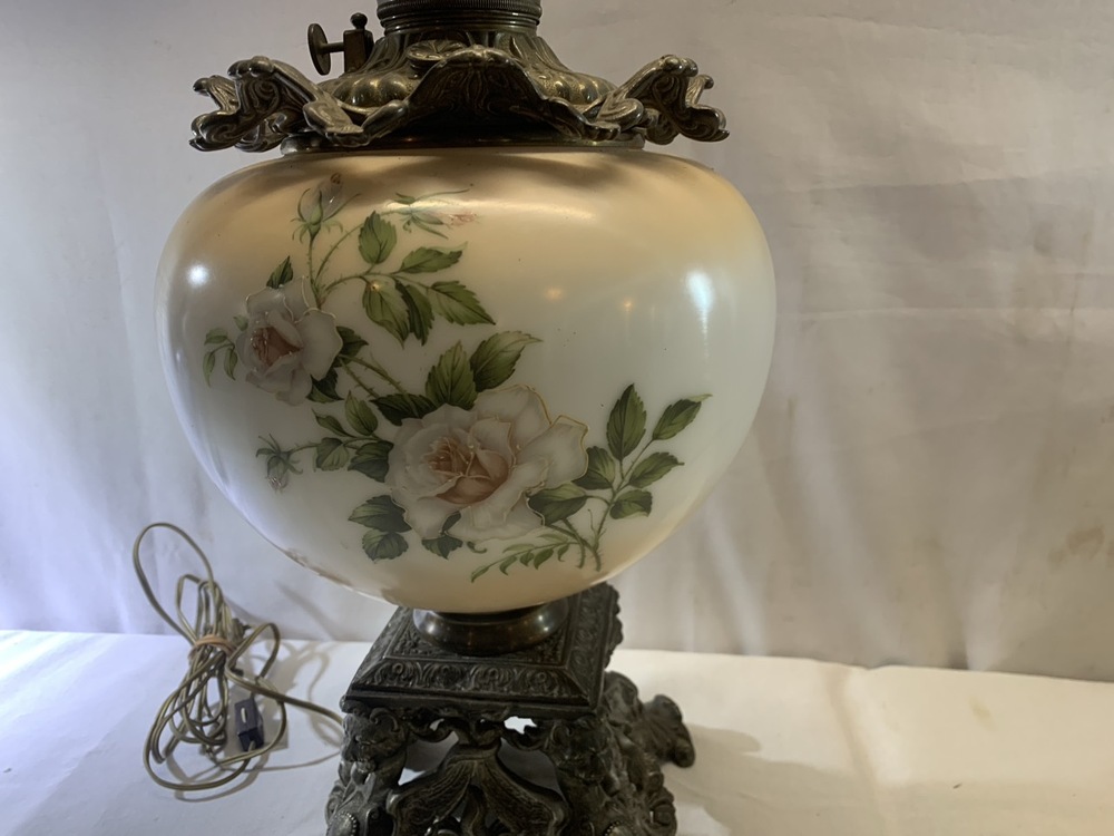 Victorian Hand Painted Gone With The Wind Parlor Lamp Electrified- 21” T Without Shade