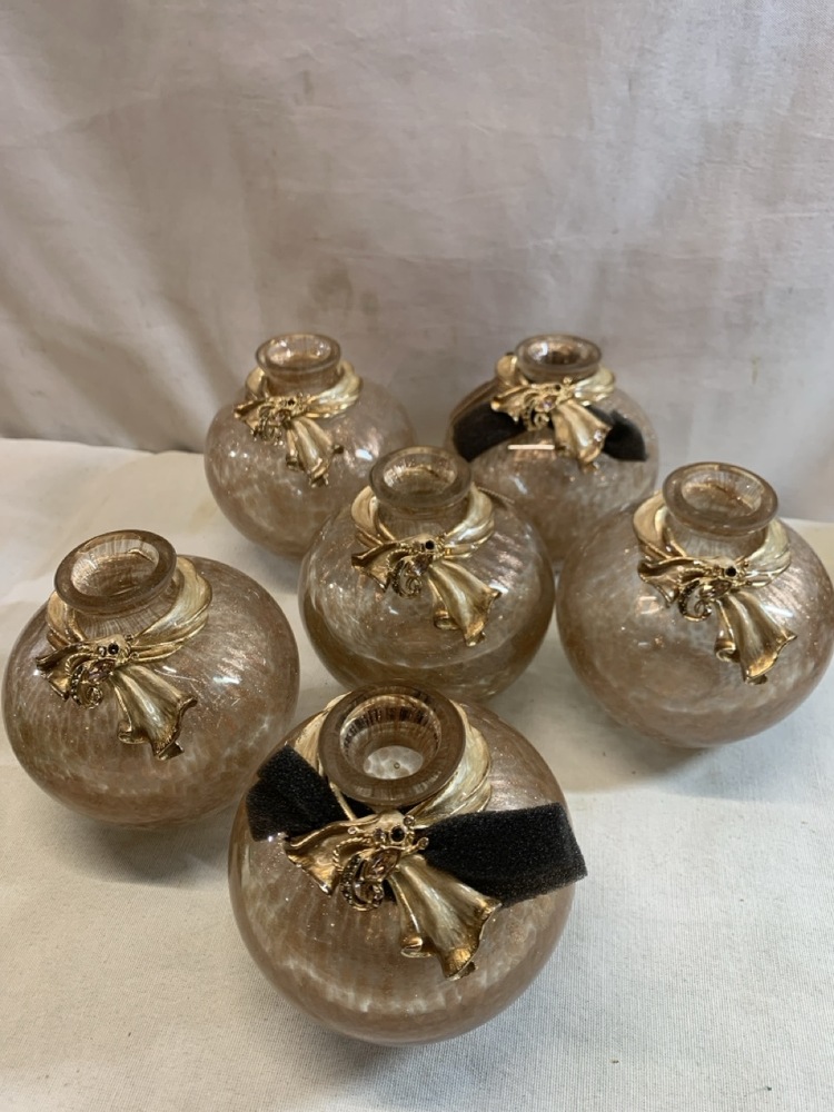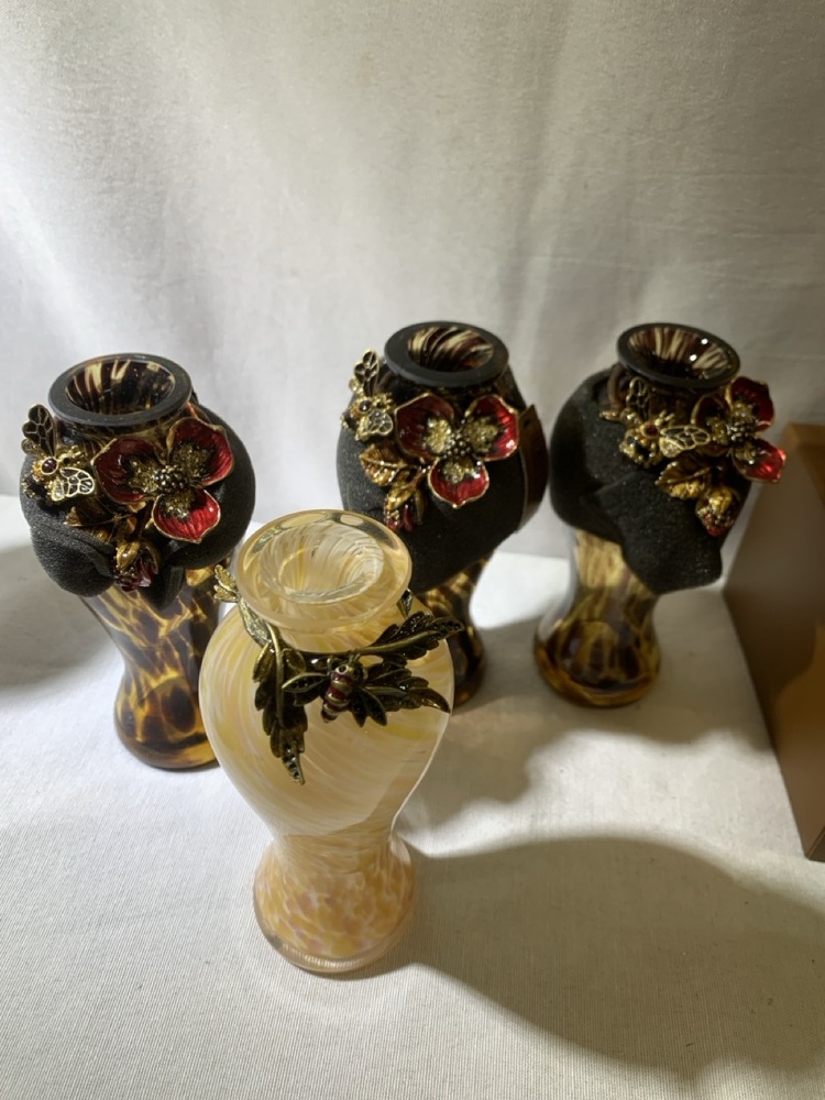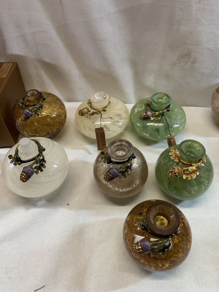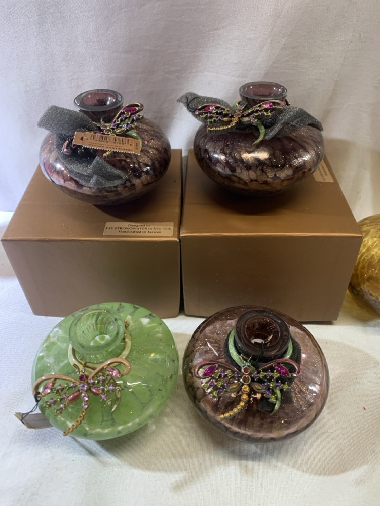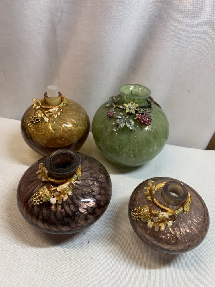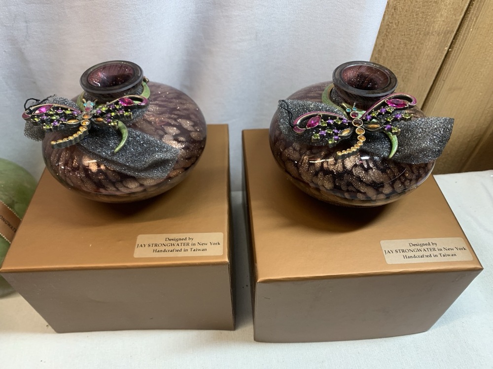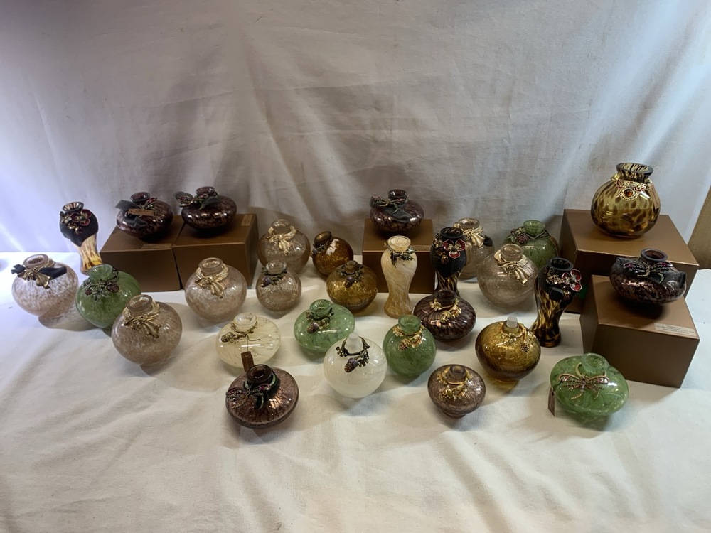 Jay Strongwater Hand Blown Glass Vases and Bottles Featuring Ornate Jeweled Metalwork- 29 Total, 5 in Boxes