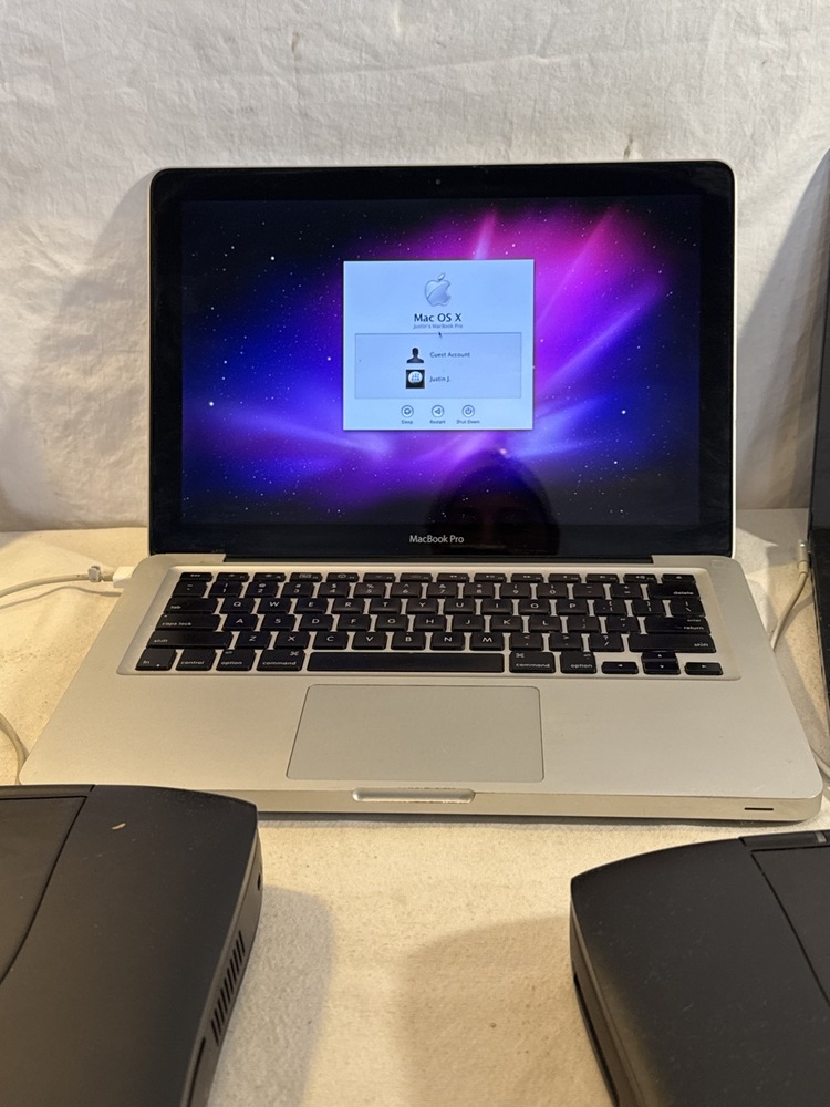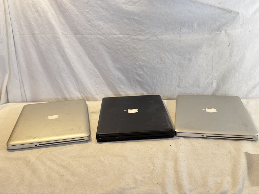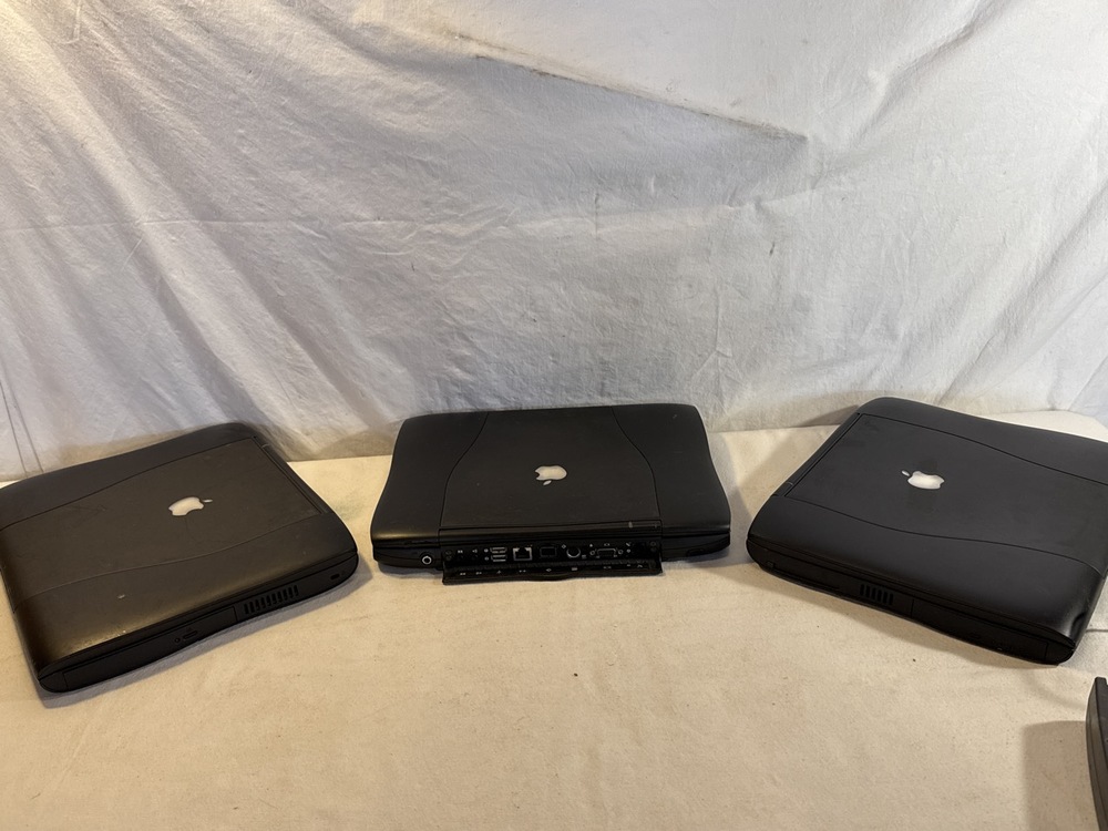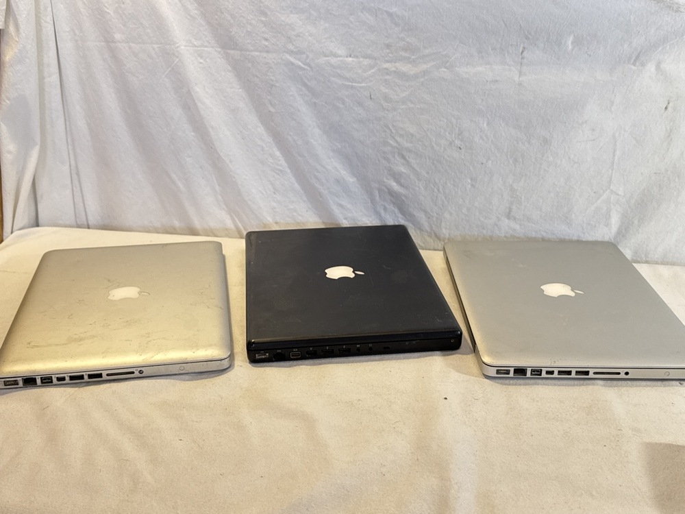 6 Apple Laptop Computers - 2 MacBook Pros, 1 Macbook and 3 PowerBooks (PowerBook, 2 Macintosh PowerBook G3) ~ 3 Chargers~ all 3 Macbooks Work/ Turn on ; All 3 Powerbanks do not power up