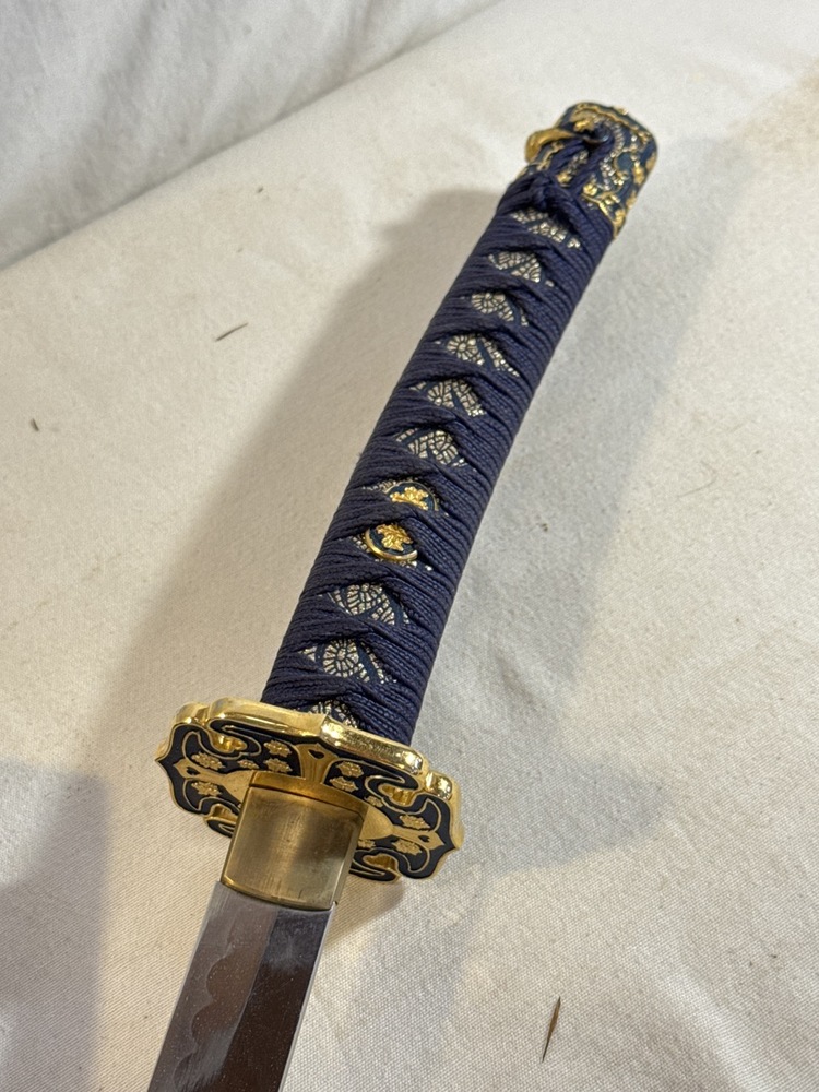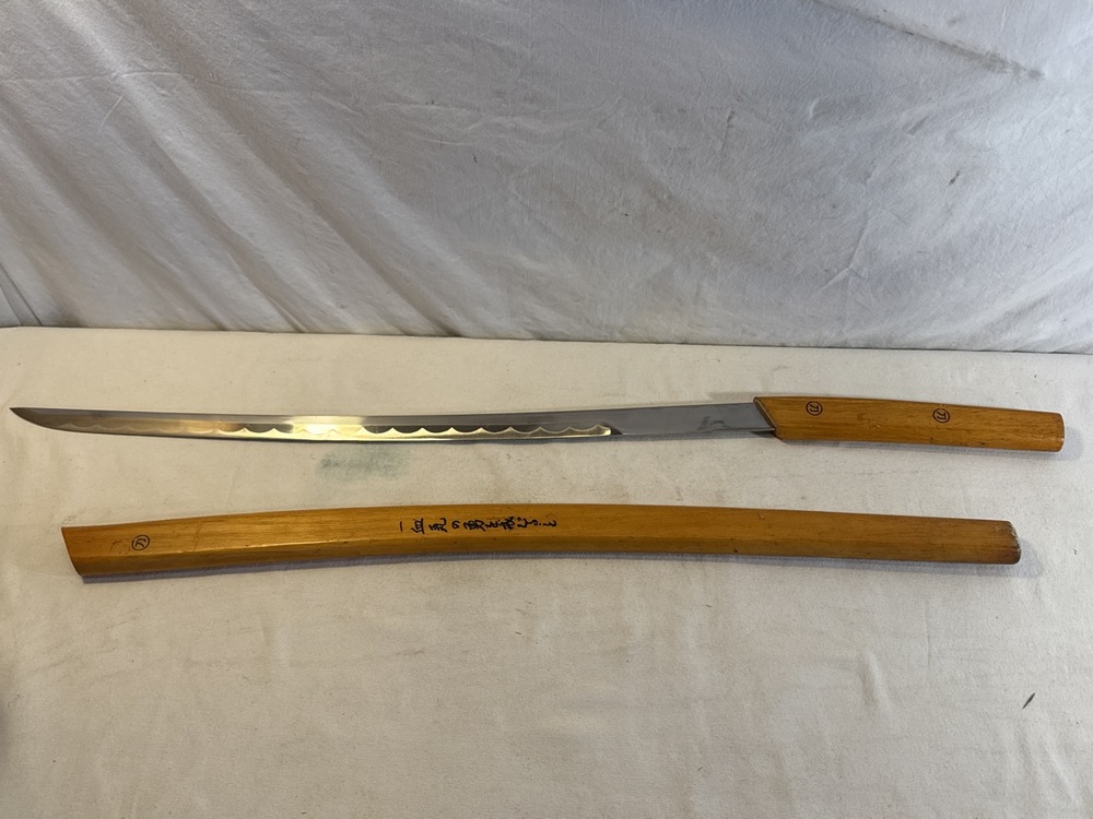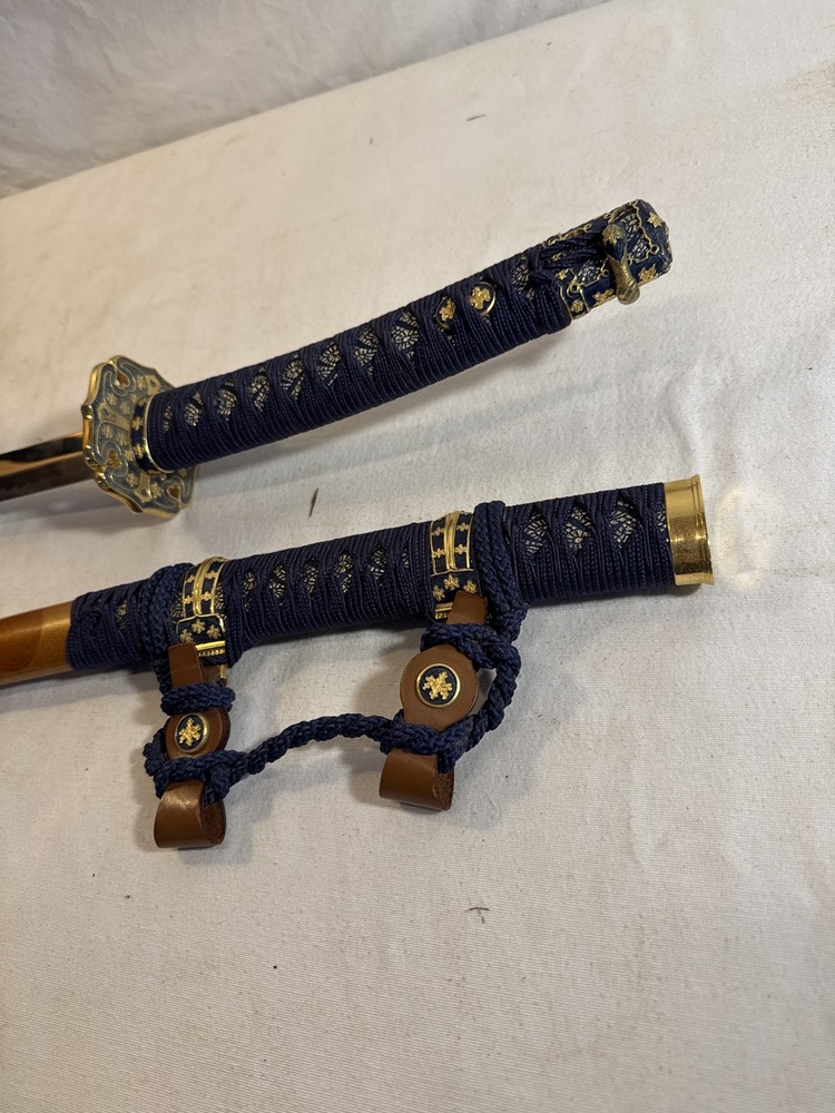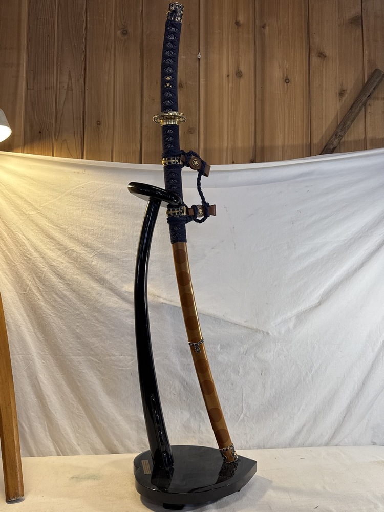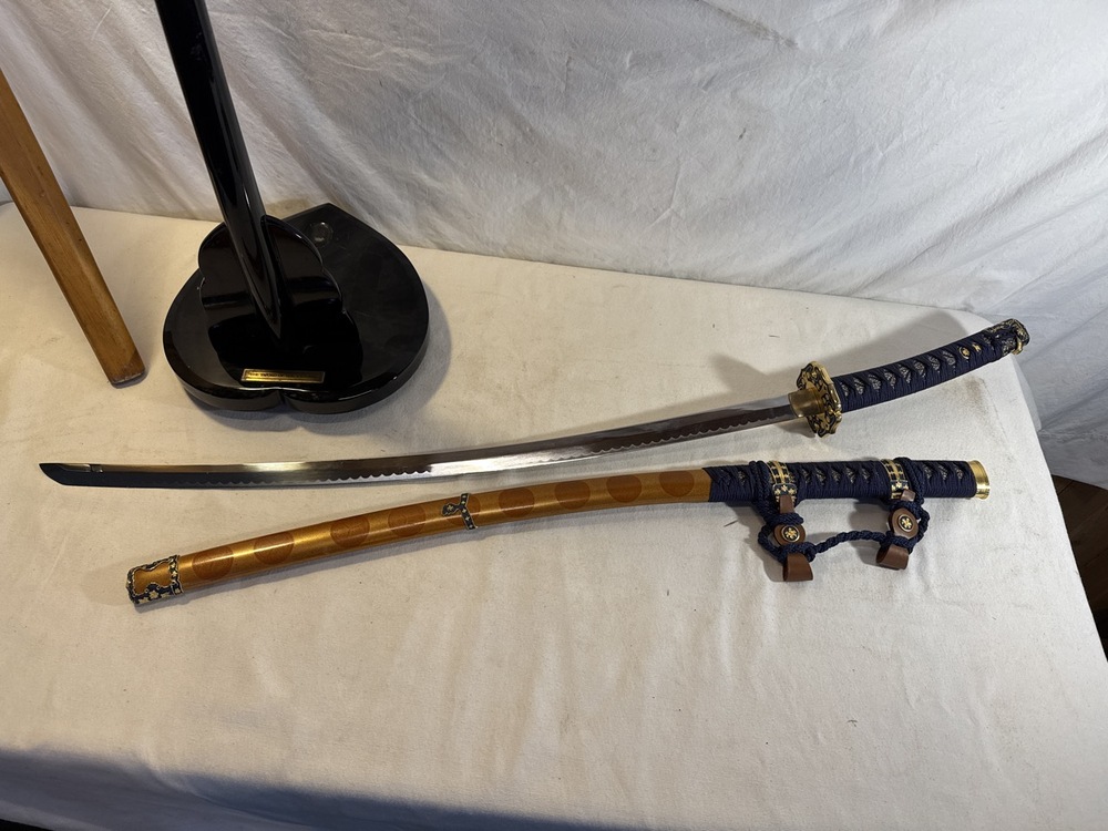 2 Samurai Swords and Stand - Franklin Mint Samurai Sword on stand “ The Sword of the Samurai” and Wood handle / Sheath Samurai Sword