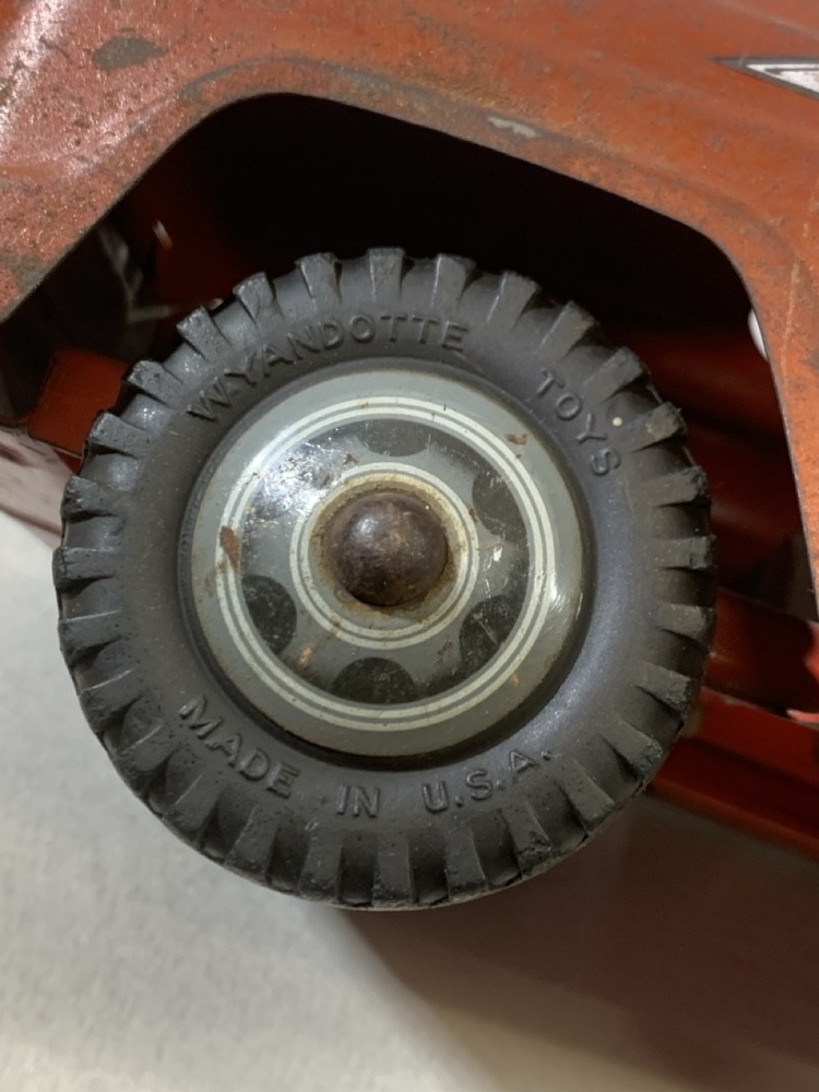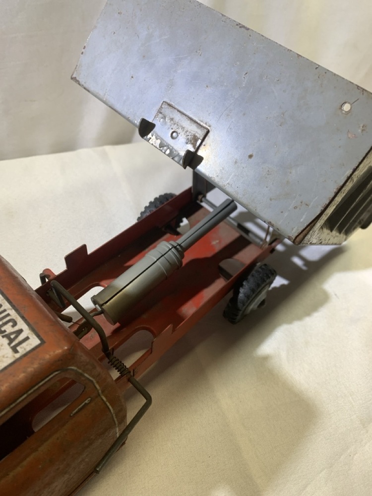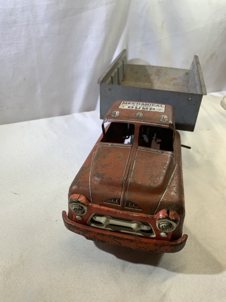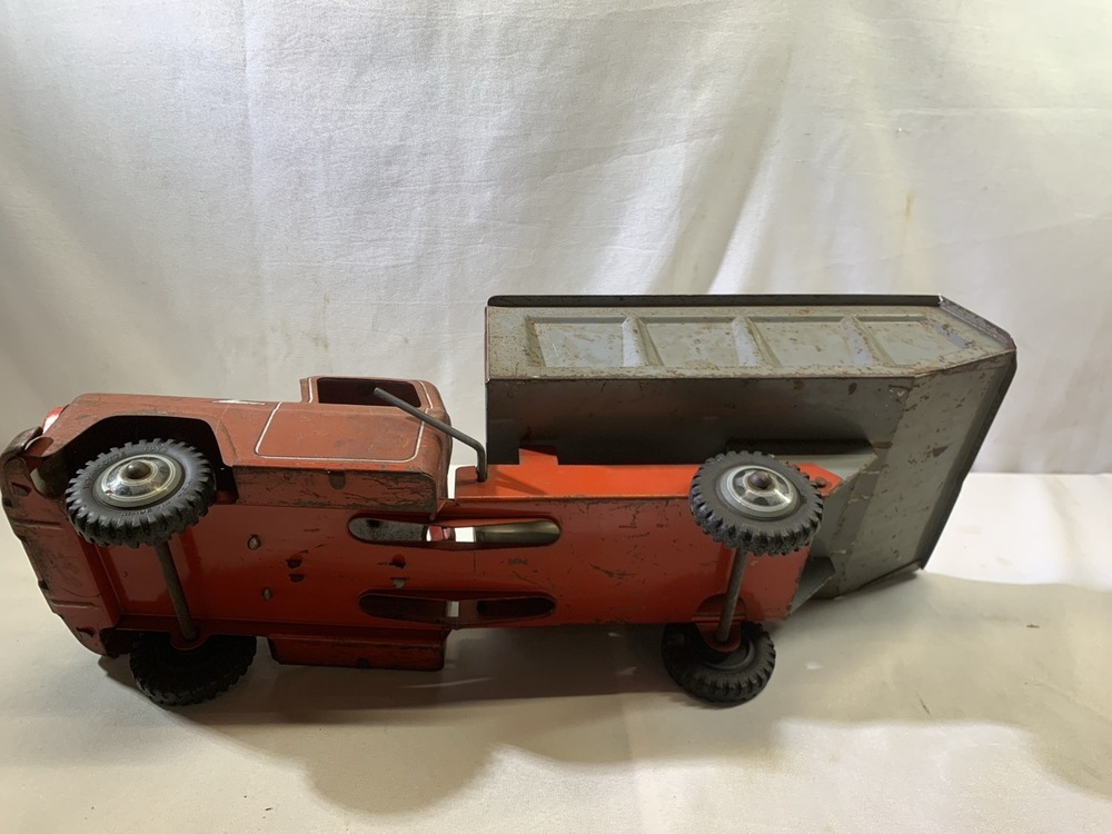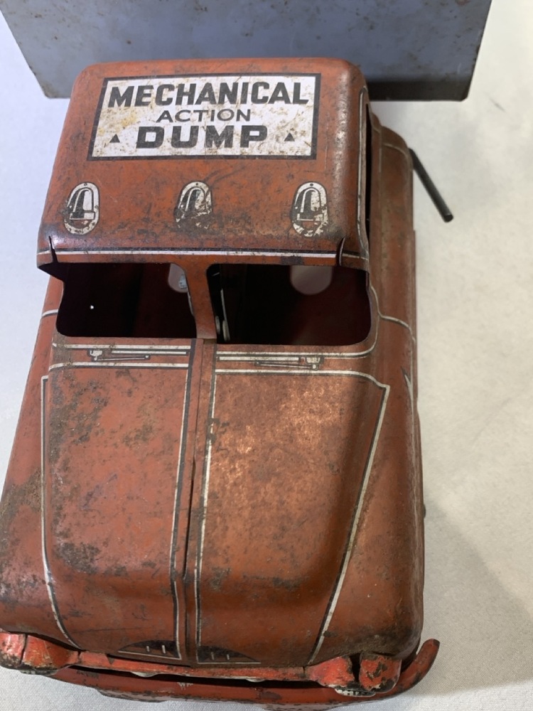 Wyandotte Pressed Steel Mechanical Action Dump Truck- 20” L x 7.5” W x 6.5” T