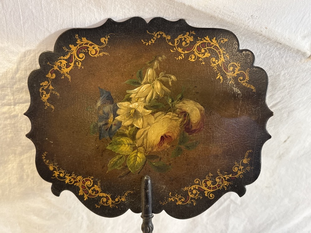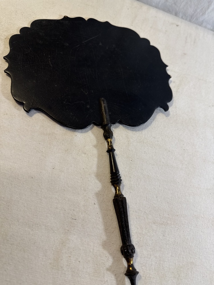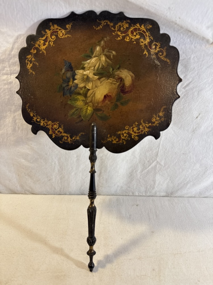 Antique Papier Mache Face Screen Fan- 15.5” L x 9.5” W