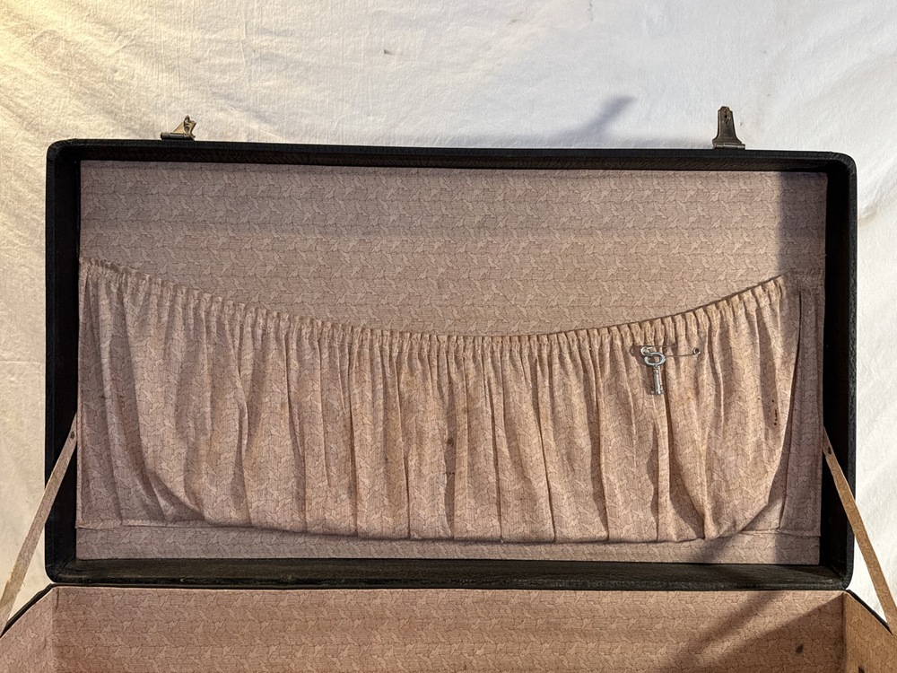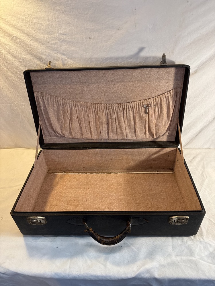 Vtg. Hard- Sided Suitcase - 24” x 13” x 6 3/4” - Fabric Lined ~ Has Key