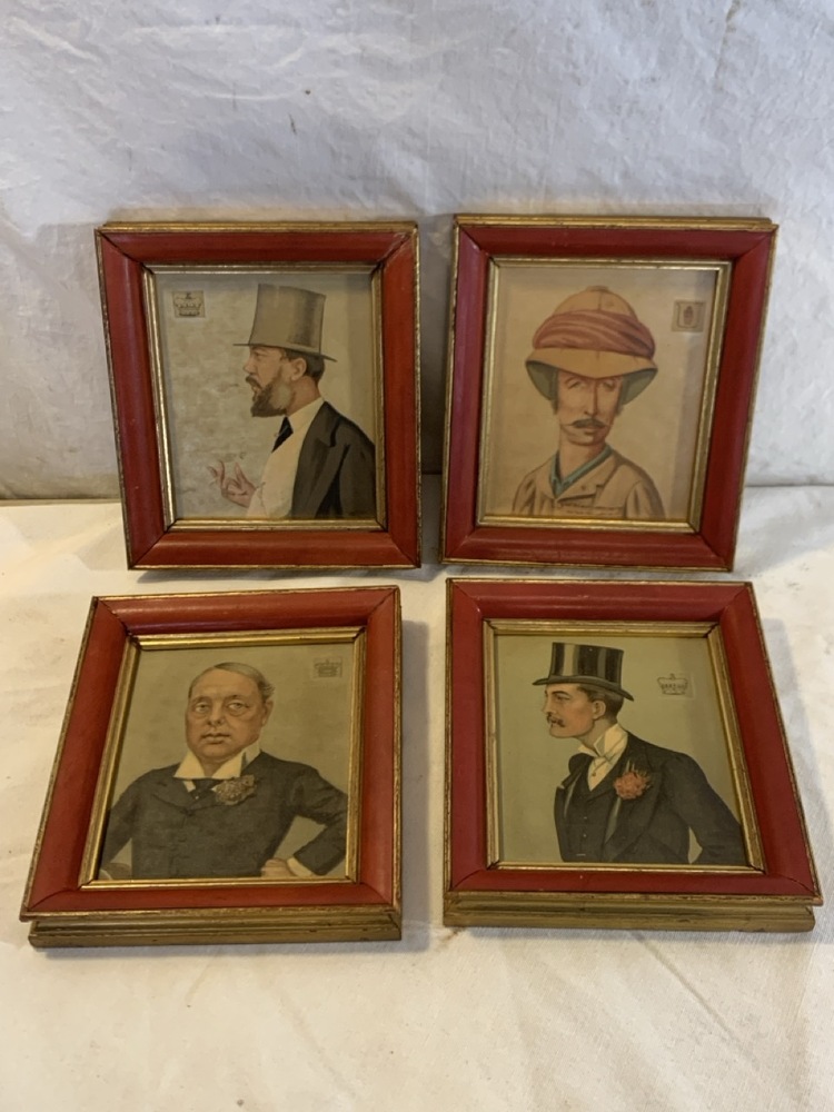 4 Antique Framed Vanity Fair Caricatures “Spy Prints” ~ “Little Bo Beep”, “Frome”, Conservative Conversion”