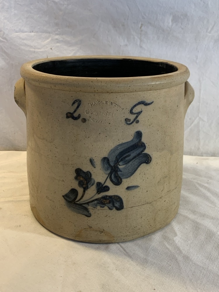 Antique Salt Glazed Stoneware “Haidle & Zipf” Union Pottery Crock - Newark NJ ~ 9” Tall
