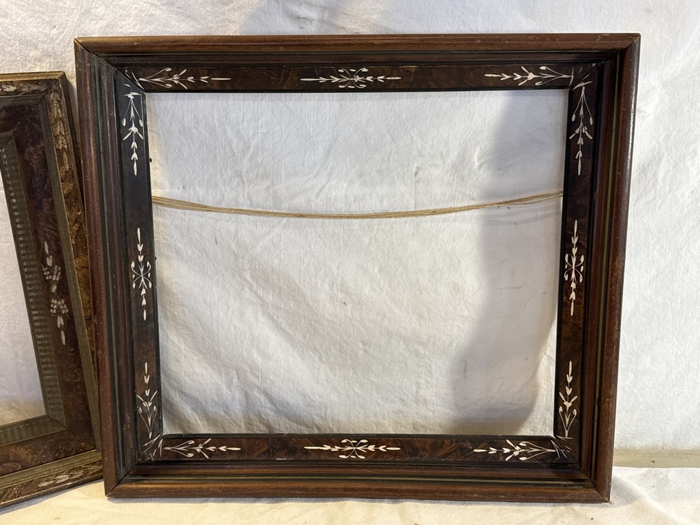 3 Antique Deep Walnut Carved Frames - 15” x 12” and 17 1/2” x 15 1/2”