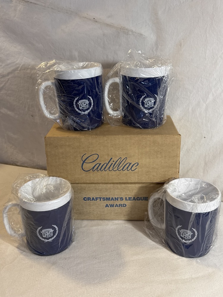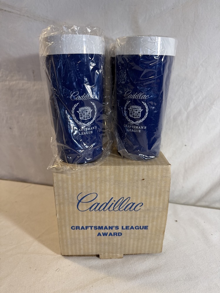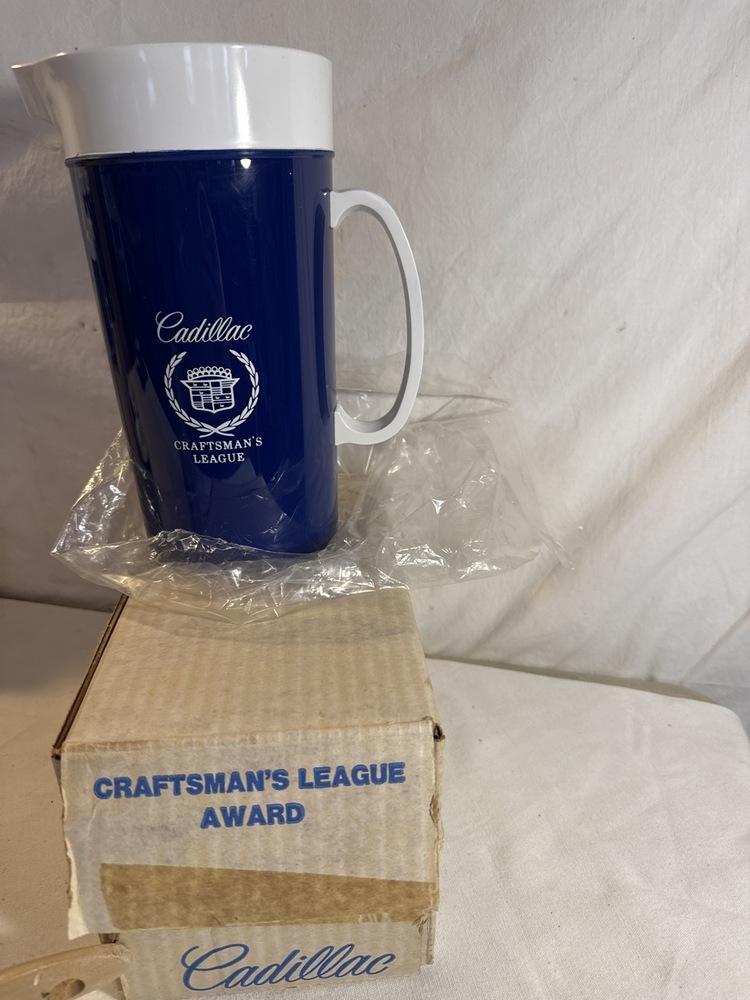 Vtg Cadillac Thermo-Serv Set Presented As Recognition for “Cadillac Craftsman’s League Award”including Pitcher, Ice Bucket, Mugs & Glasses- All New in Box