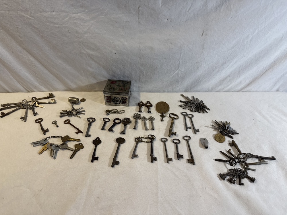 Collection of Antique Keys including Skeleton, Brass Keys, Key Chains