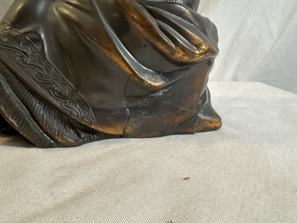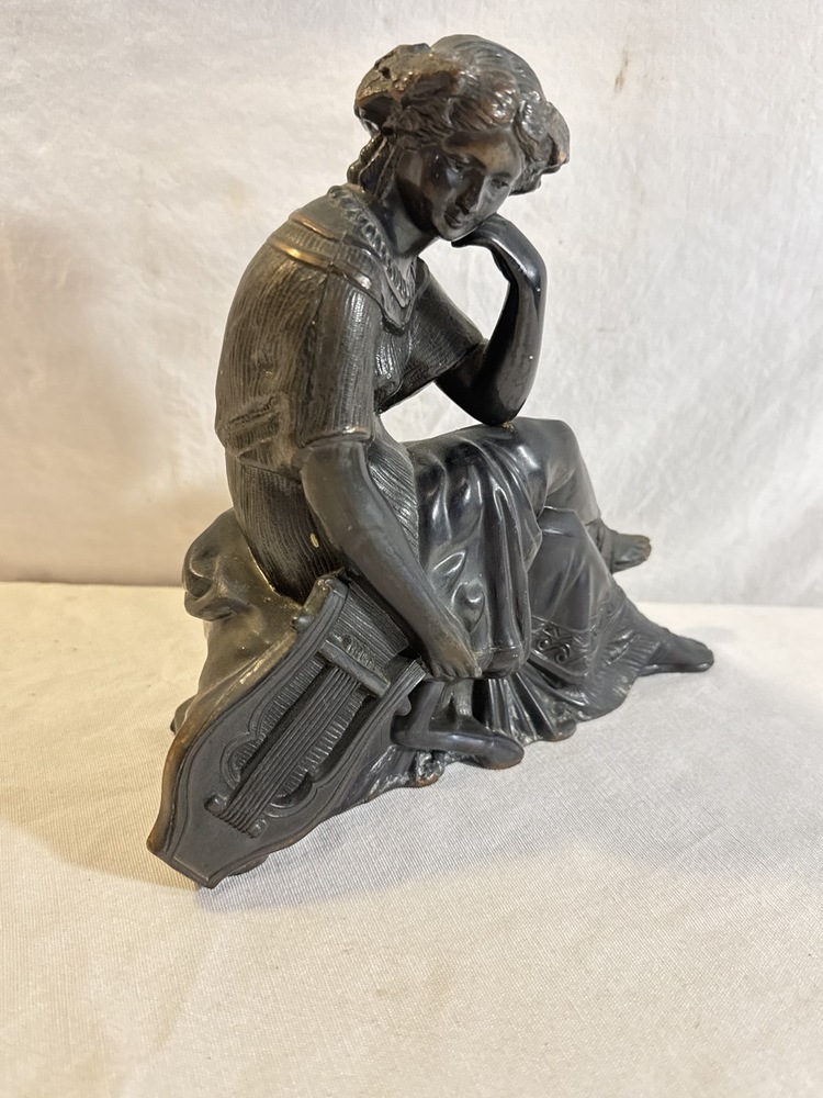Antique Art Nouveau Cast Metal Woman with Harp Lyre Figure- 8.5” T x 9” L4 “ D(has repair as pictured)