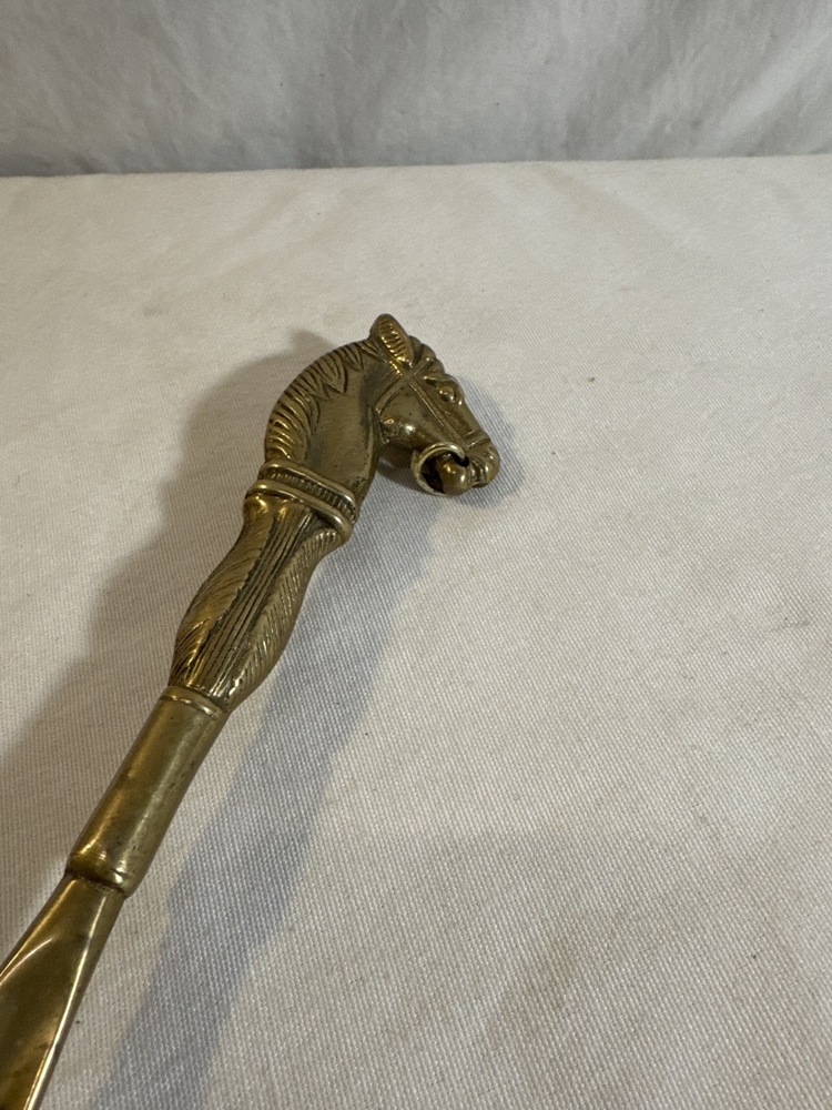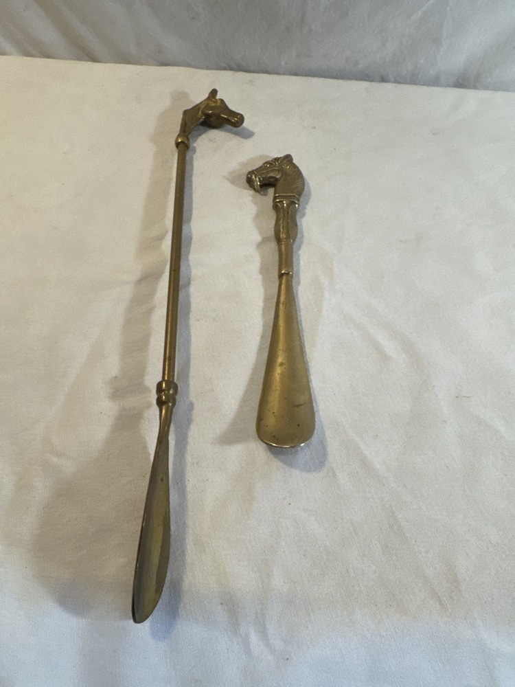 2- Vtg Horse Head Brass Shoe Horns- 17.5” L & 10.5” L