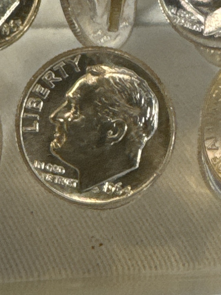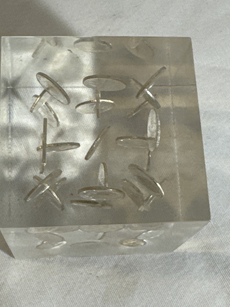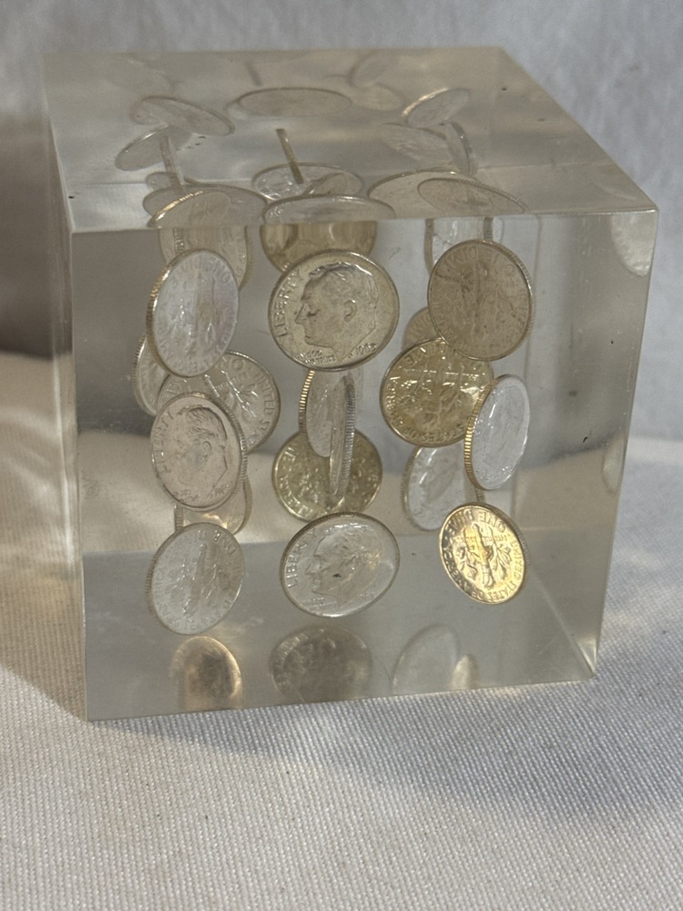 Vtg Lucite Cubic Paperweight Encasing 1960,1963 & 1964 Silver Dimes- 3” Cube