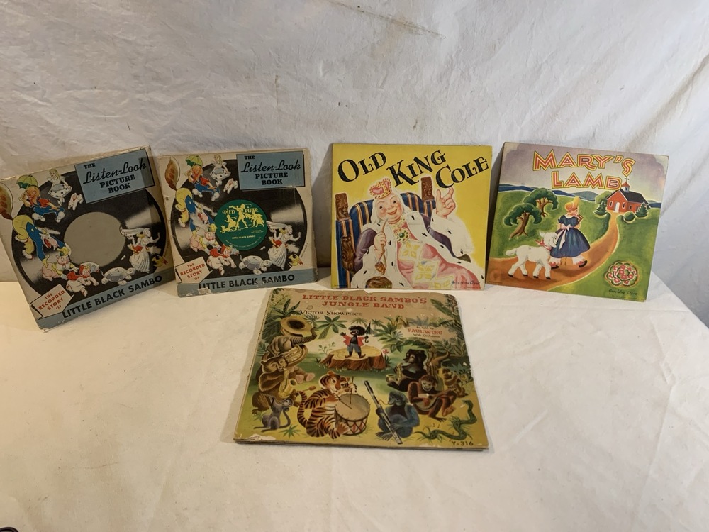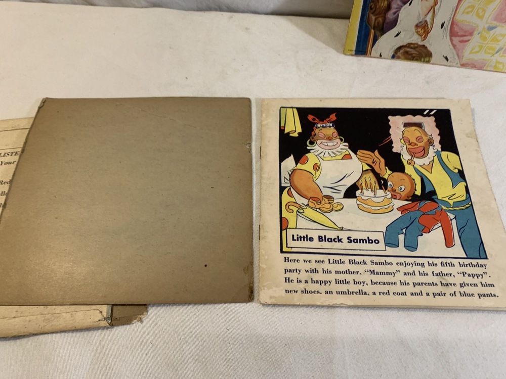 Vtg Children’s Books including Little Black Sambo Listen-Look Book( no Record), Mary’s Lamb Pop Up Book, Old King Cole Pop Up Book, Little Black Sambo’s Jungle Band Cover Only